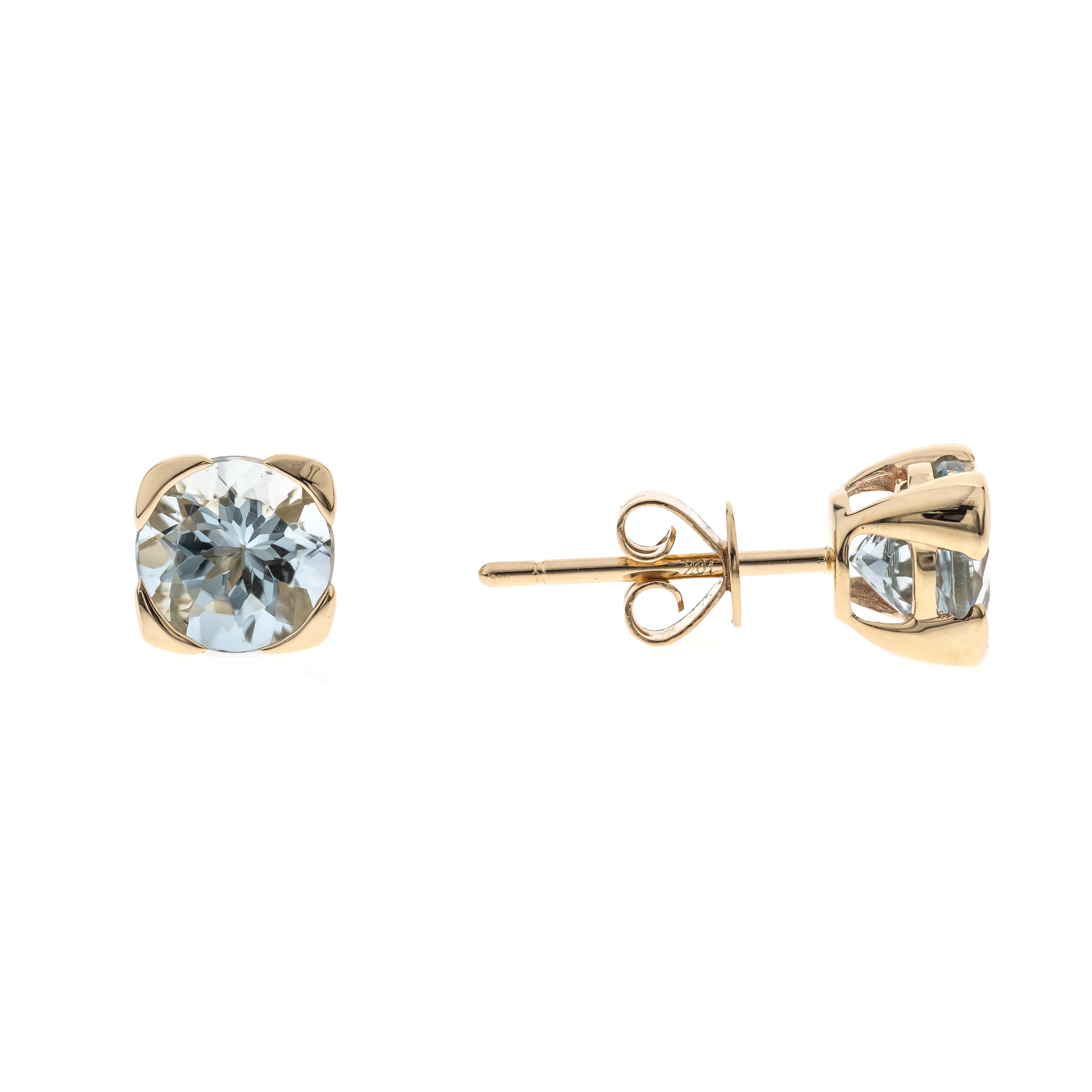 Decorate yourself in elegance with this Earring is crafted from 10-karat Yellow Gold by Gin & Grace. This Earring is made up of Round-Cut Brazilian Aquamarine (2 pcs) 1.54 carat. This Earring is weight 0.96 grams. This delicate Earring is polished to a high finish shine.