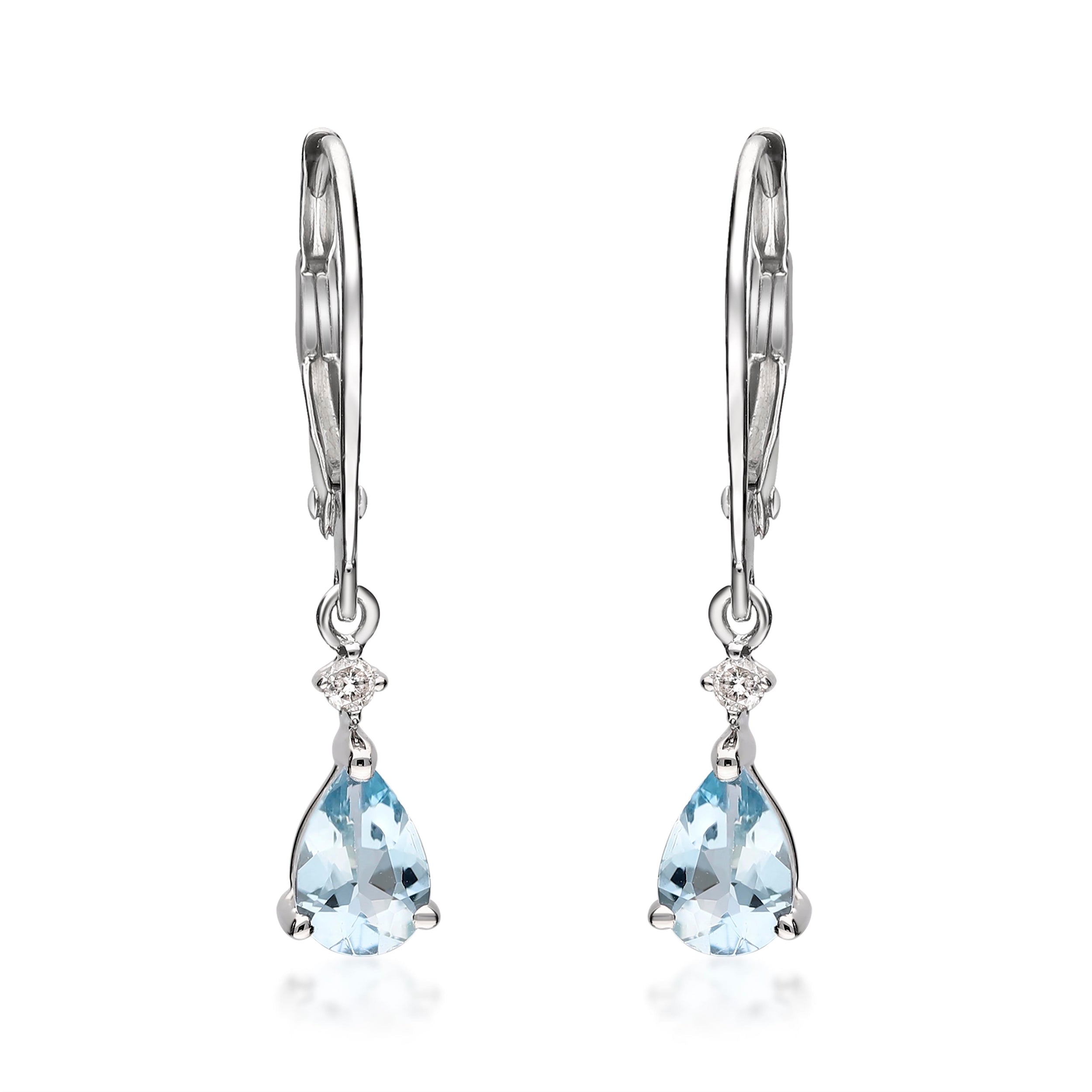 Decorate yourself in elegance with this Earring is crafted from 14K White Gold by Gin & Grace Earring. The jewelry boasts 4X6 mm Pear-Cut prong setting Blue color Aquamarine (2 pcs) 1.0 Carat and Round-Cut prong setting Diamond (2 pcs) 0.03 Carat. This Earring is weight 1.10 grams. This delicate Earring is polished to a high finish shine. Simple lever back clasps keep these earrings securely fastened.