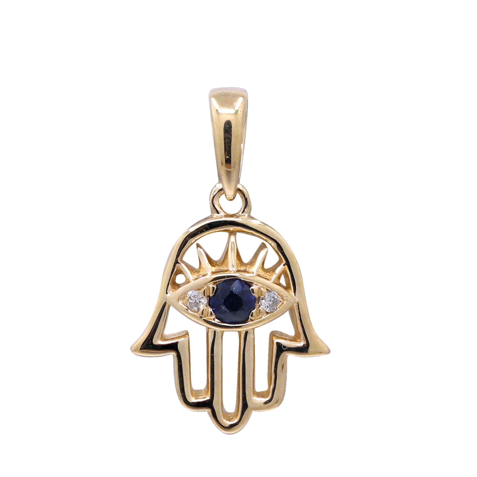 Decorate yourself in elegance with this Pendant crafted from 14K Yellow Gold by Gin & Grace. This Pendant is made up of Ceylon Blue Sapphire Round-cut (1 pcs) 0.04 and Round-cut White Diamond (4 Pcs) 0.03 Carat. This Pendant weigh 2.02 grams. This delicate Pendant is polished to a high finish shine.