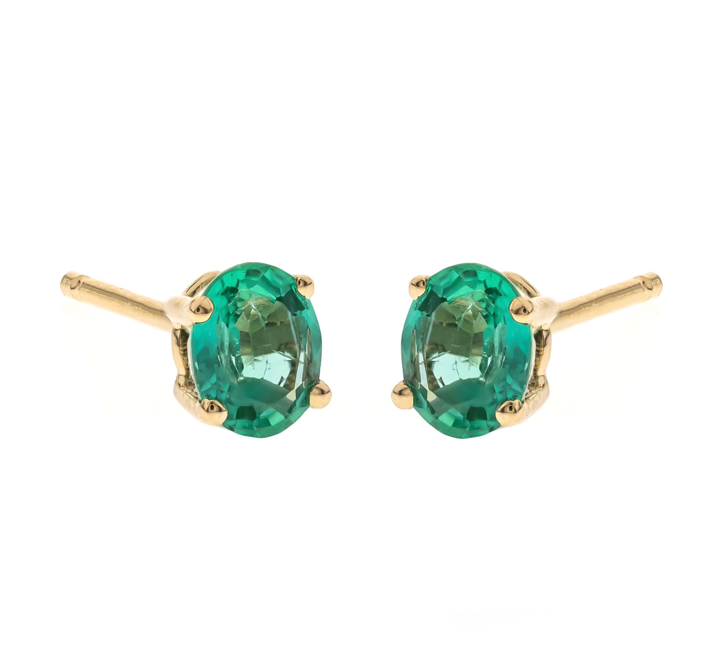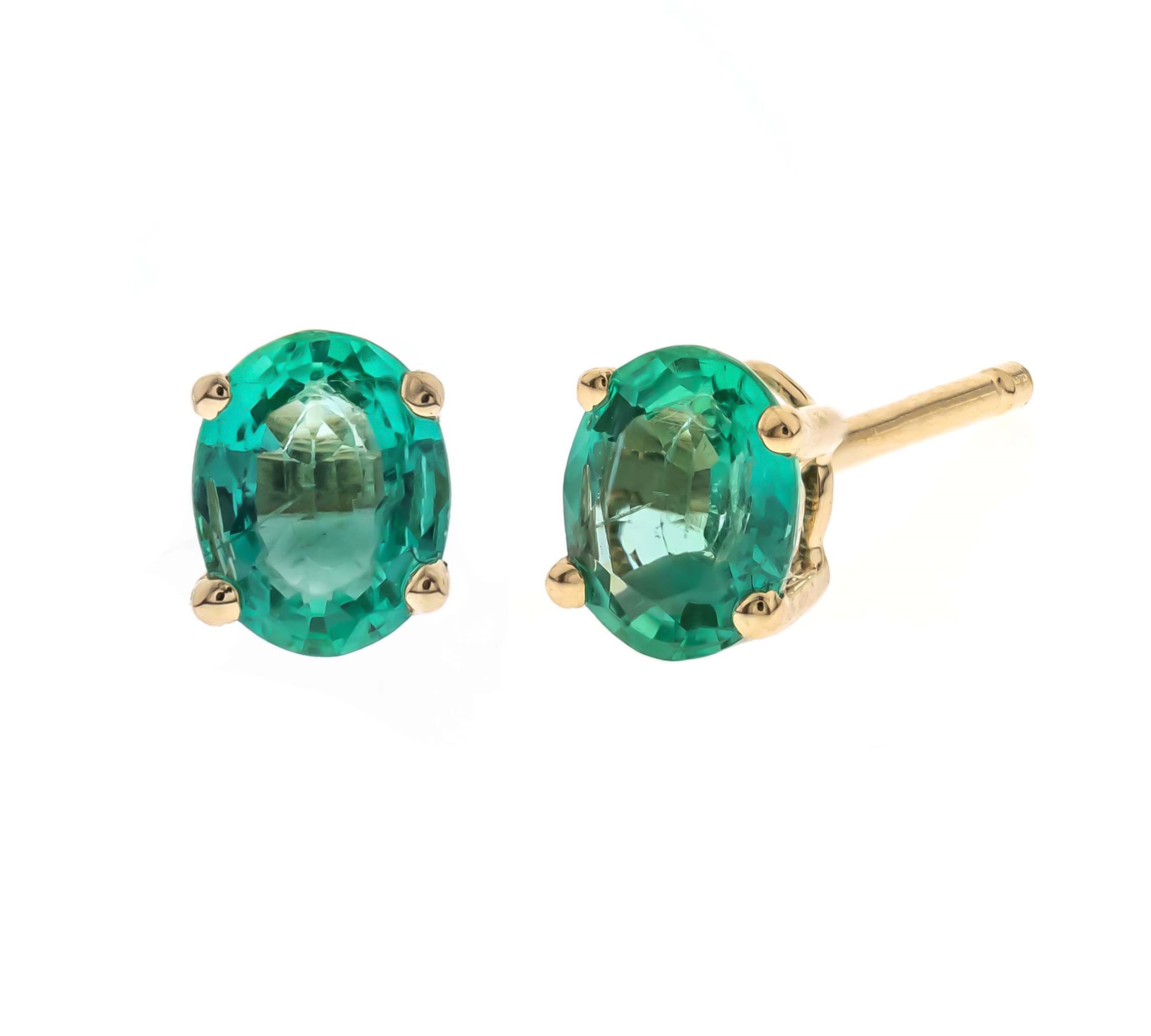 Alivia 14K Yellow Gold Oval-Cut Natural Zambian Emerald Earring
