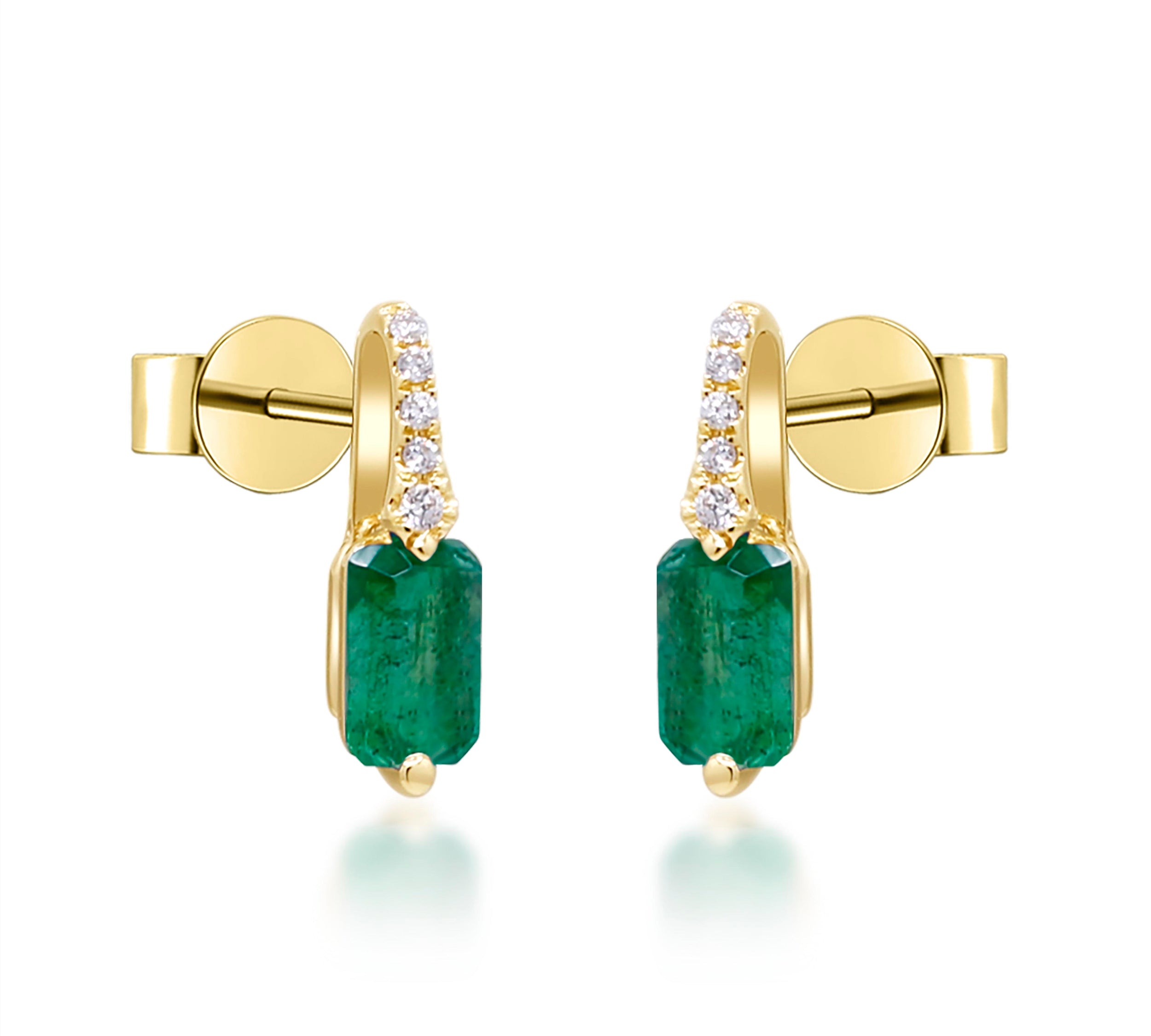 Elsie 10K Yellow Gold Emerald-Cut Natural Zambian Emerald Earrings