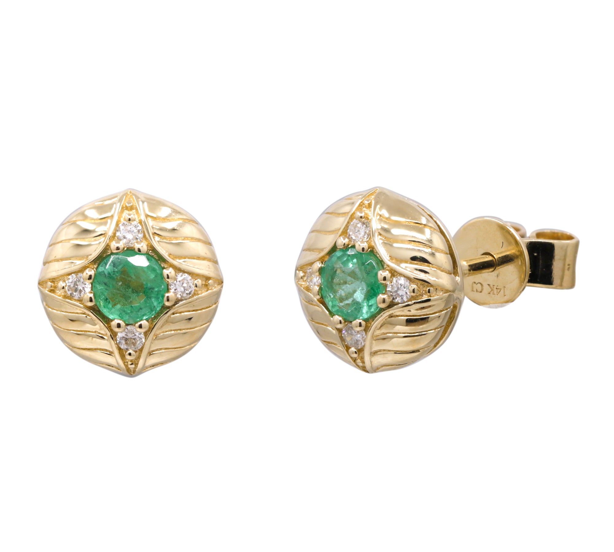 Emerald Halo Carved Dome Earrings with Emeralds & Diamonds