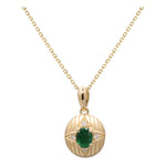 Decorate yourself in elegance with this Pendant is crafted from 14-karat Yellow Gold by Gin & Grace. This Pendant is made up of Oval-Cut Emerald (1 pcs) 0.39 carat and Round-cut White Diamond (4 Pcs) 0.04 Carat. This Pendant is weight 2.24 grams. This delicate Pendant is polished to a high finish shine.