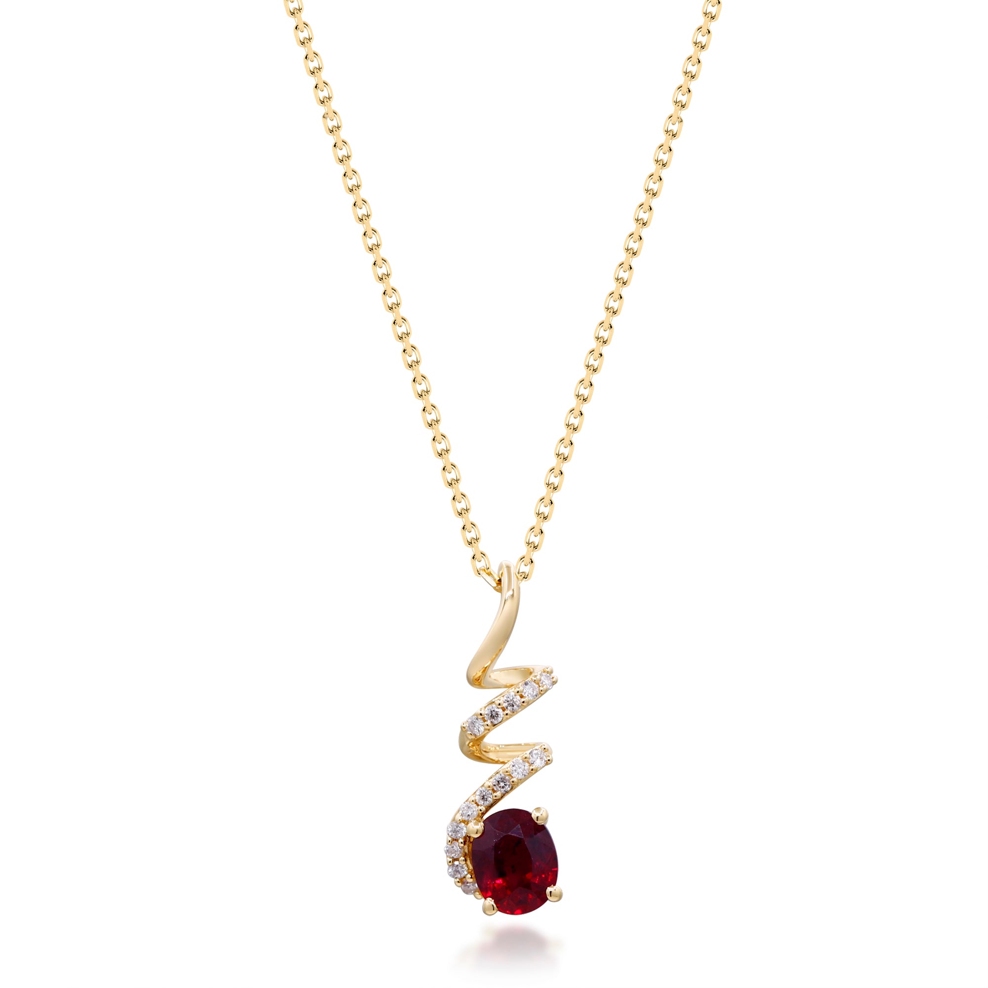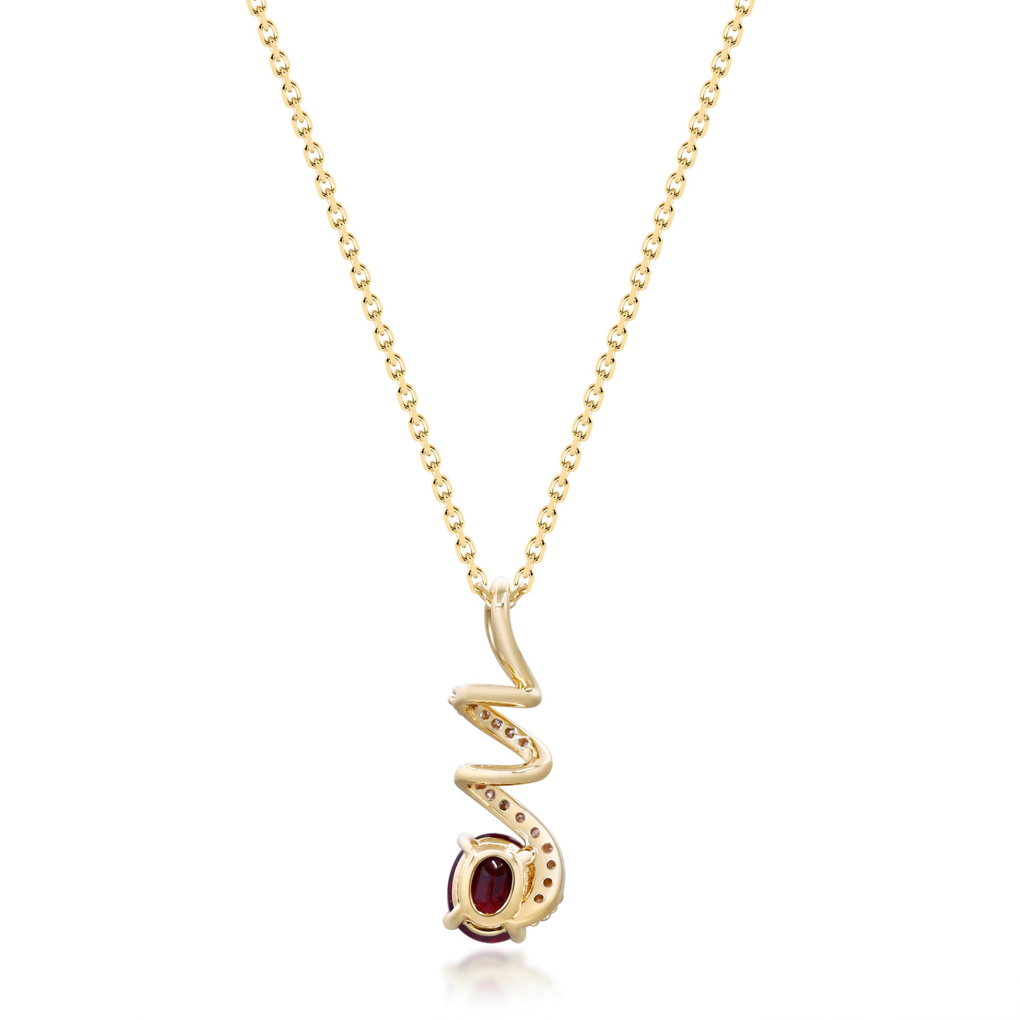 Stunning, timeless and classy eternity Unique Pendants. Decorate yourself in luxury with this Gin & Grace Pendants. The 10K Yellow Gold jewelry boasts Oval-Cut Prong Setting Mozambique Ruby (1 pcs) 0.40 Carat, along with Natural Round cut white Diamond (14 Pcs) 0.05 Carat, accent stones for a lovely design. This Pendants is weight 0.51 grams. Crafted with 10K Yellow Gold, this delicate Pendants is polished to a high finish shine.