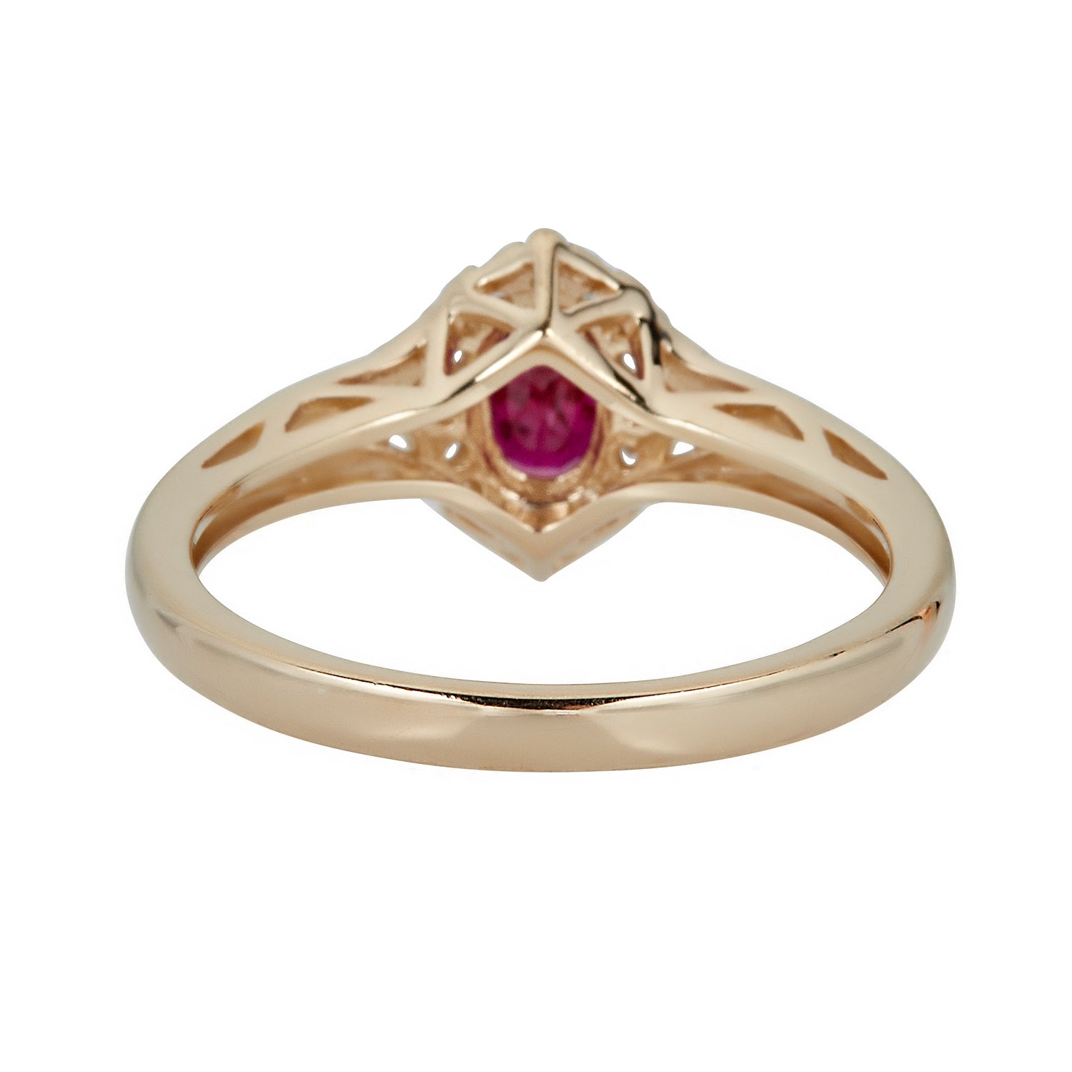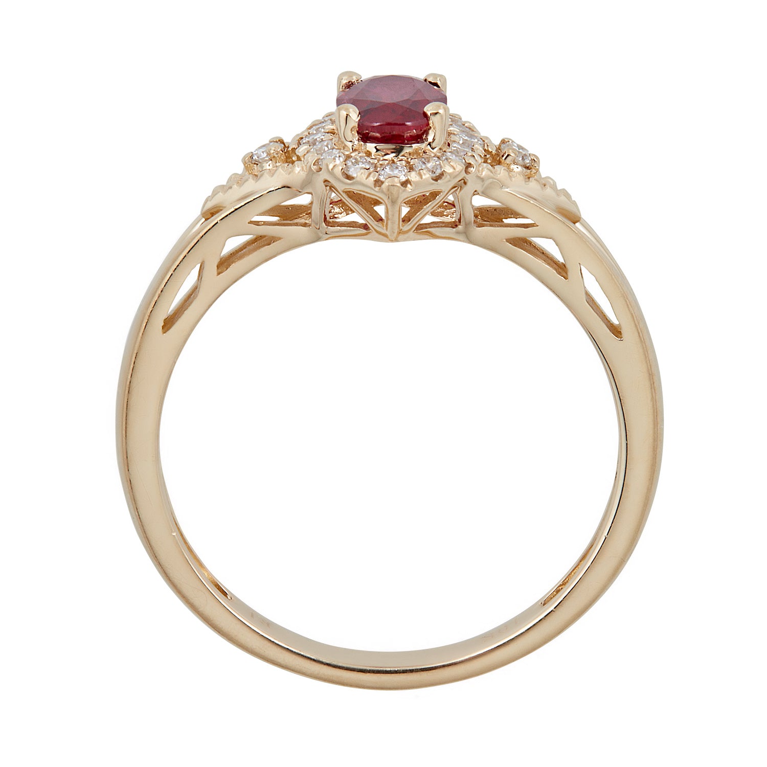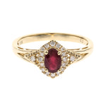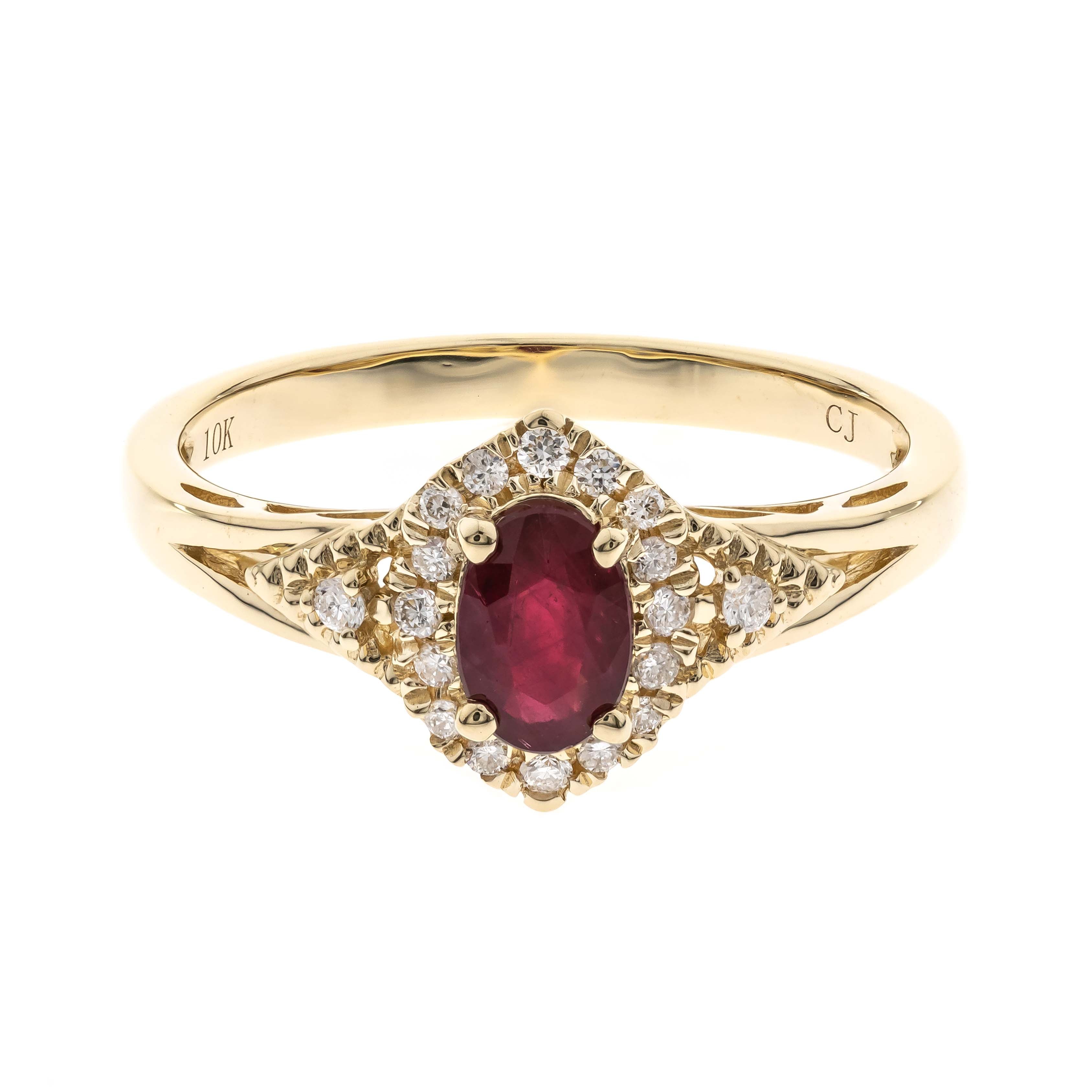 Stunning, timeless and classy eternity Unique ring. Decorate yourself in luxury with this Gin & Grace ring. The 10k Yellow Gold jewelry boasts 4X6 Oval-Cut Prong Setting Genuine Mozambique Ruby (1 pcs) 0.54 Carat and Round-Cut Prong Setting Diamond (18 pcs) 0.12 Carat accent stones for a lovely design. This ring is weight 2.16 grams. Crafted with 10k Yellow Gold, this delicate Ring is polished to a high finish shine.