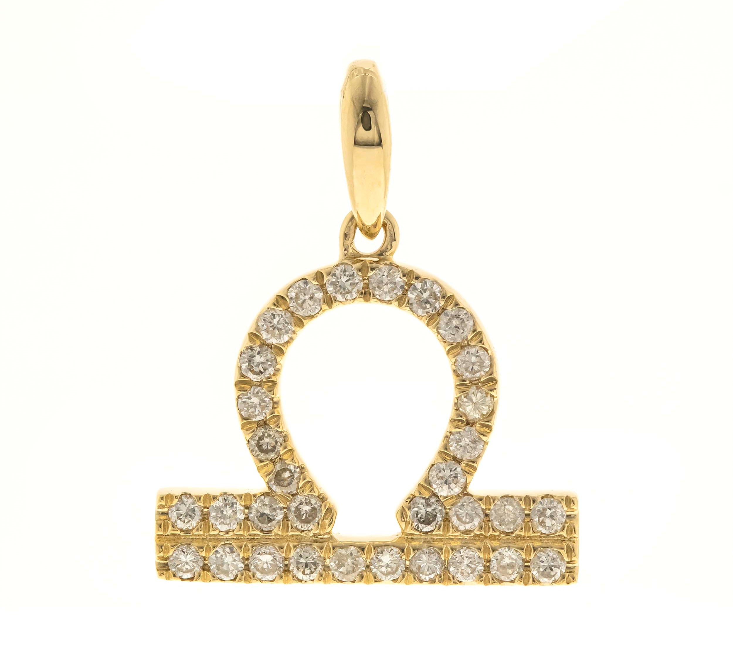 Libra 14K Yellow Gold Round-Cut White Diamond Pendant