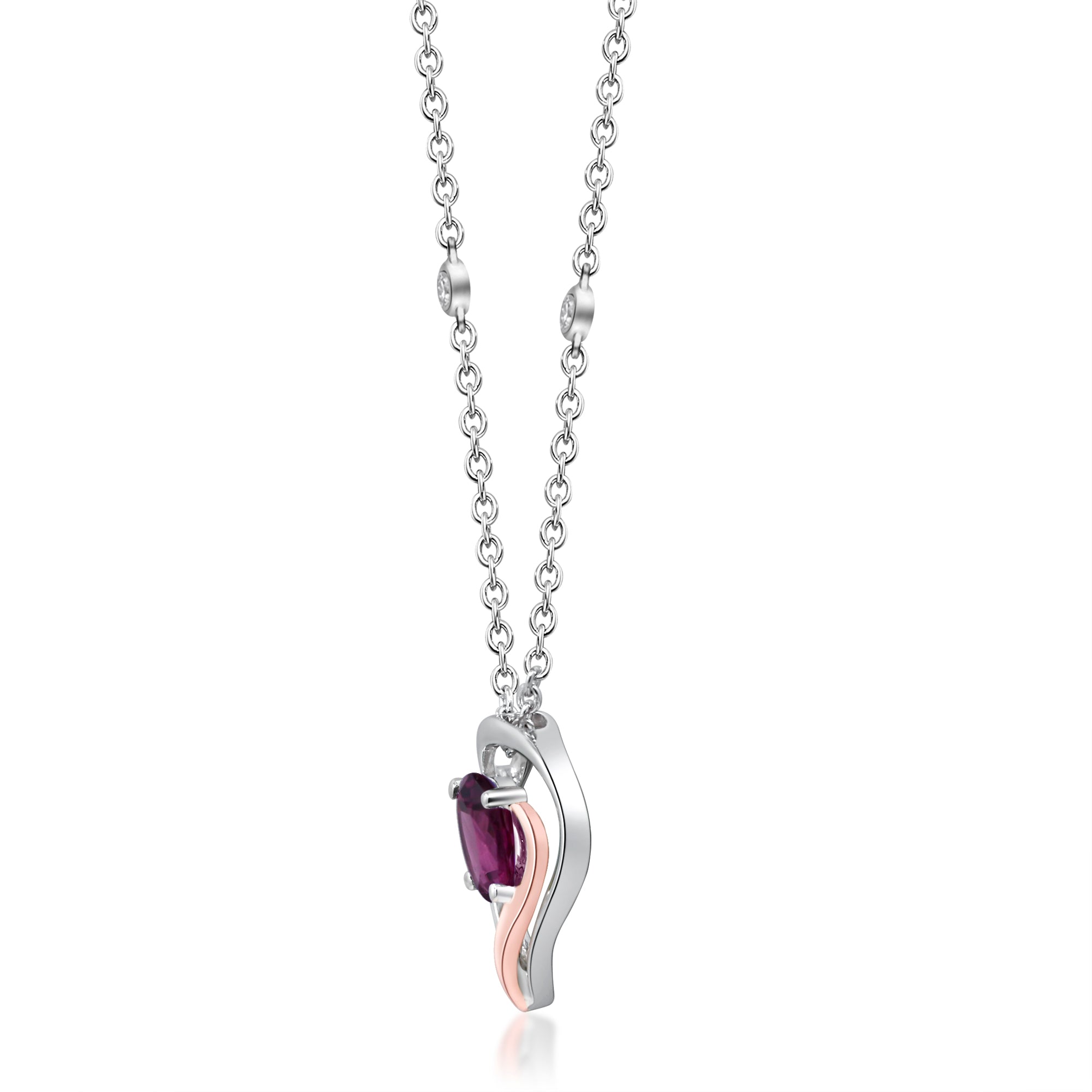 This captivating heart-shaped pendant is crafted from 925 sterling silver and beautifully coated with 10K rose gold for a soft, romantic glow. At its center lies a striking oval-cut rhodolite weighing 0.94 carats, radiating rich raspberry-pink hues and elegant brilliance. The harmonious blend of warm rose gold and vibrant rhodolite creates a timeless design that symbolizes love, passion, and sophistication. Perfect for everyday elegance or as a meaningful gift, this pendant is a graceful addition to any jewelry collection.