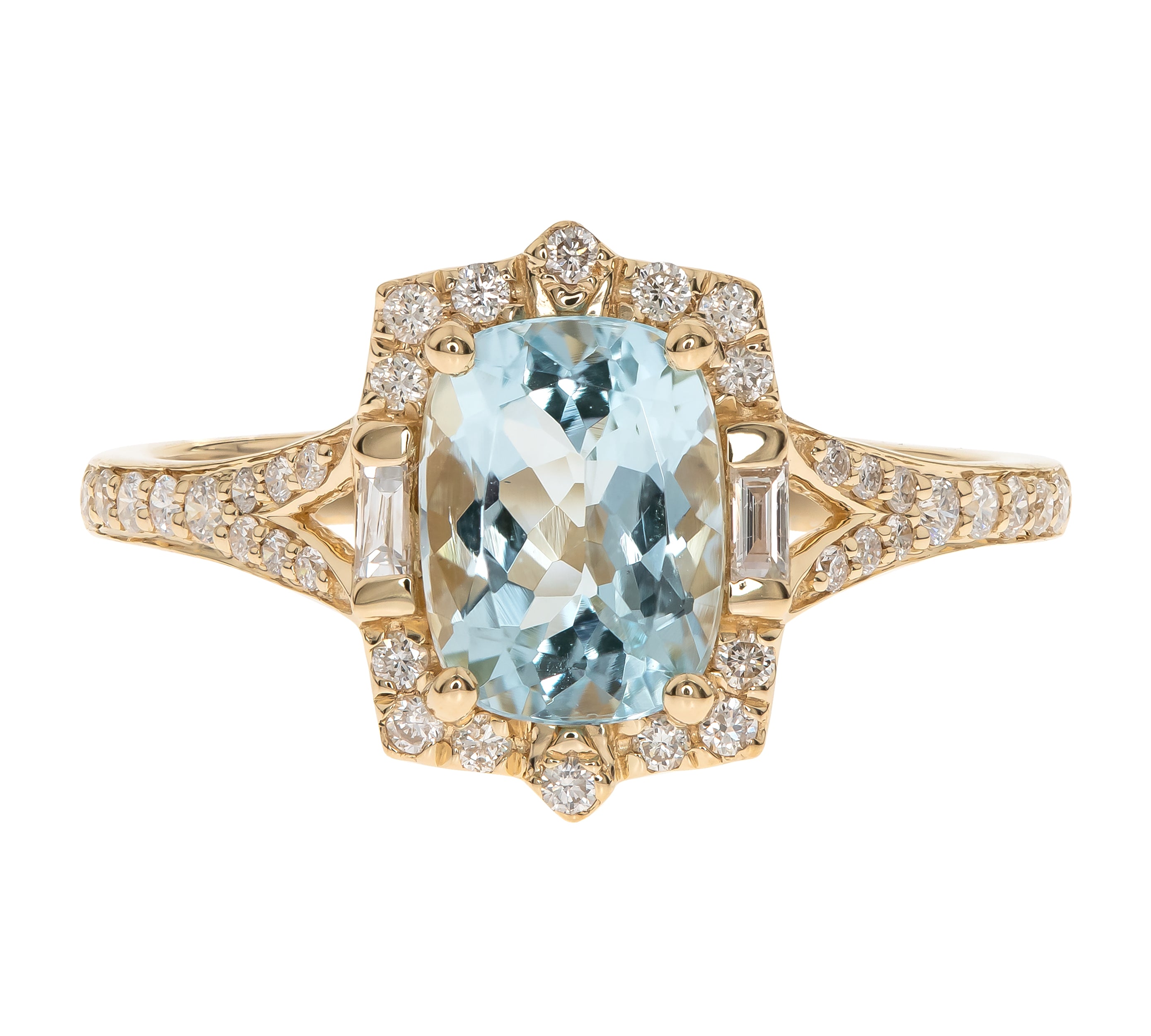 Zoey 14K Two Tone Gold Cushion-Cut Brazilian Aquamarine Ring