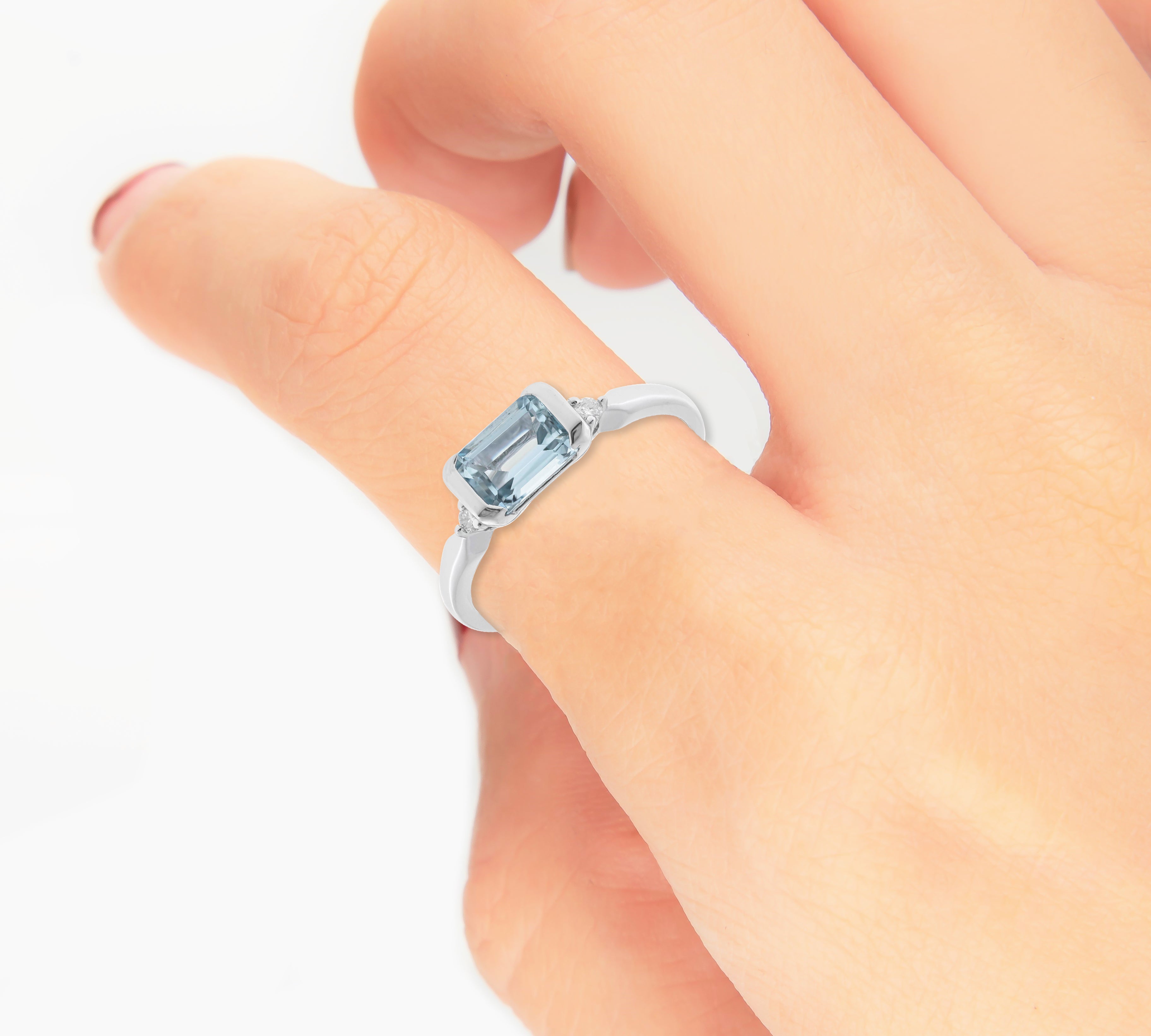 Alina 10K White Gold Emerald-Cut Aquamarine Ring