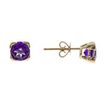 Decorate yourself in elegance with this Earring crafted from 10-karat Yellow Gold by Gin & Grace. This Earring is made up of 6.0 mm Round-cut Brazilian Amethyst (2 pcs) 1.58 carat. This Earring weighs 1.03 grams. This delicate Earring is polished to a high finish shine.