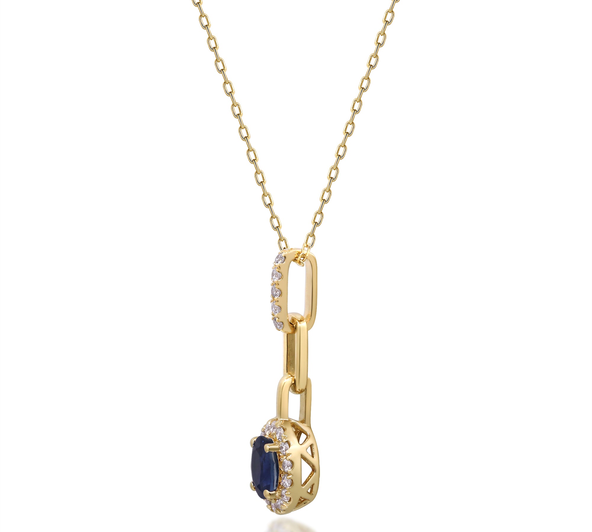 Iris 14K Yellow Gold Oval-Cut Blue Sapphire Pendant