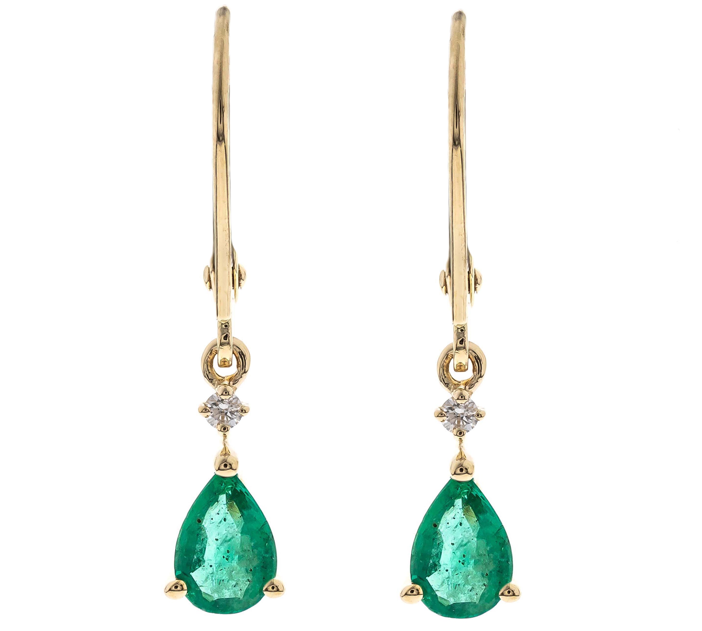 Hannah 14K Yellow Gold Pear-Cut Natural Zambian Emerald Earrings