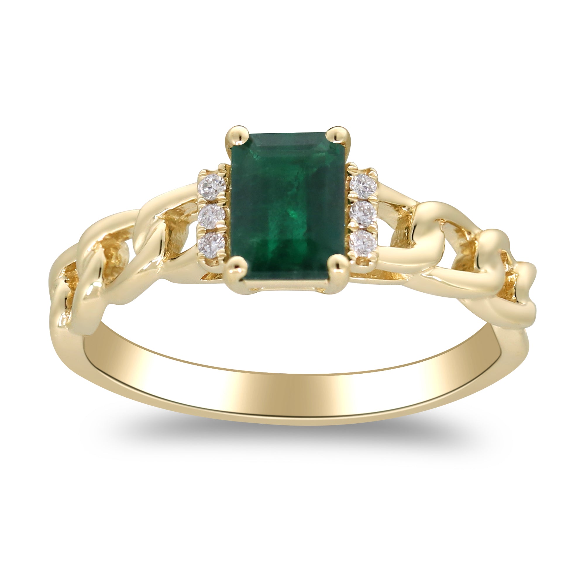 Stunning, timeless and classy eternity Vintage ring. Decorate yourself in luxury with this Gin & Grace ring. This ring is made up of 5*7MM Emerald-Cut Prong Setting Natural Zambian Emerald (1 pcs) 1.04 Carat and Natural Round-Cut Prong Setting Diamond (6 pcs) 0.04 Carat and accent stones for a lovely design. This ring is weight 2.47 grams. The ring is crafted of shining 14-karat Yellow Gold and is completed by a highly polished finish.