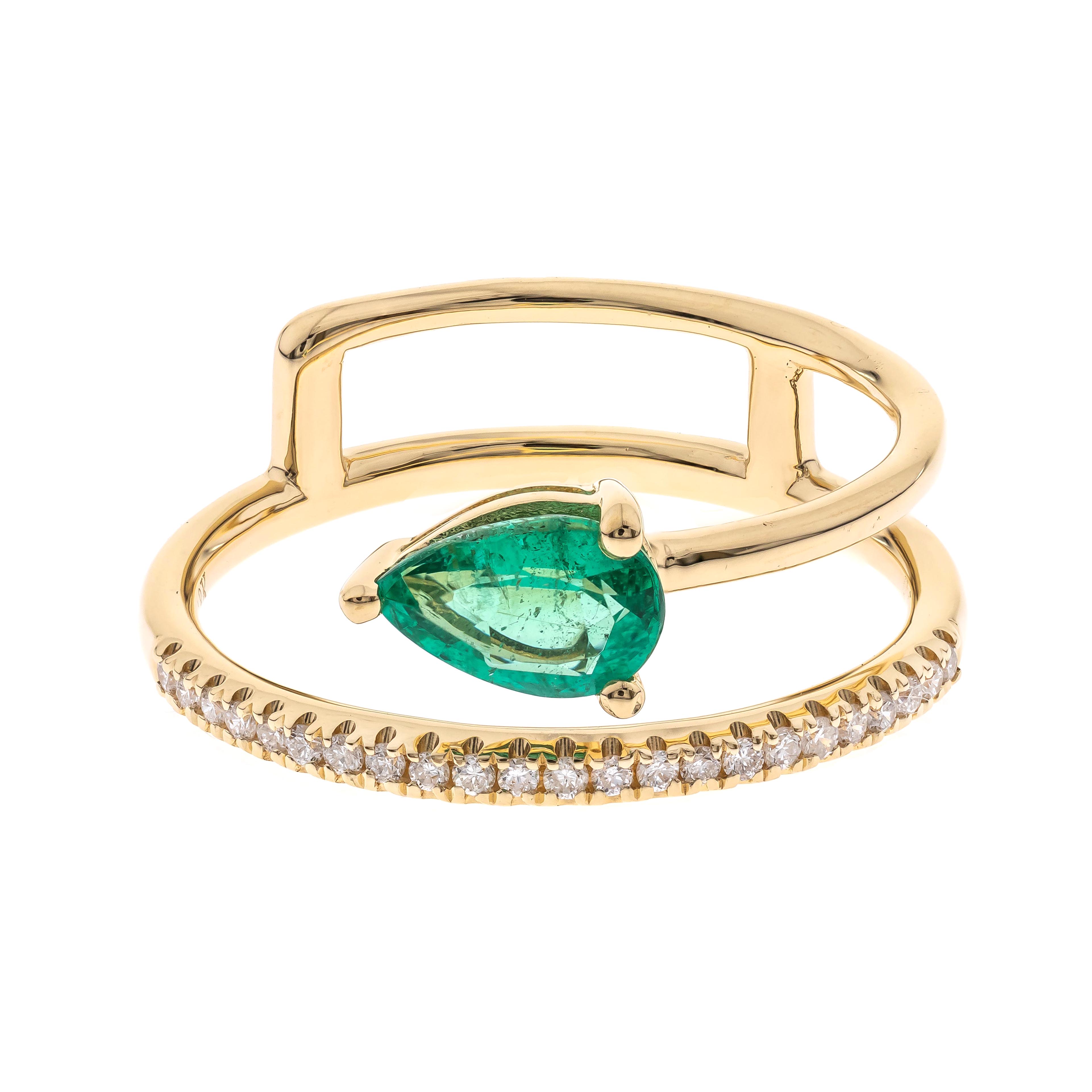 Serena 18K Yellow Gold Pear-Cut Natural Zambian Emerald Ring