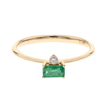 The focal point of this captivating design is an oval-cut Zambian Emerald, delicately set in a prong setting. Weighing 0.33 carat, the emerald boasts a mesmerizing green hue that symbolizes nature's beauty and vitality. Surrounding the Zambian Emerald is an emerald-cut white diamond, weighing 0.04 carat, adding a brilliant sparkle that enhances the overall allure of the ring.