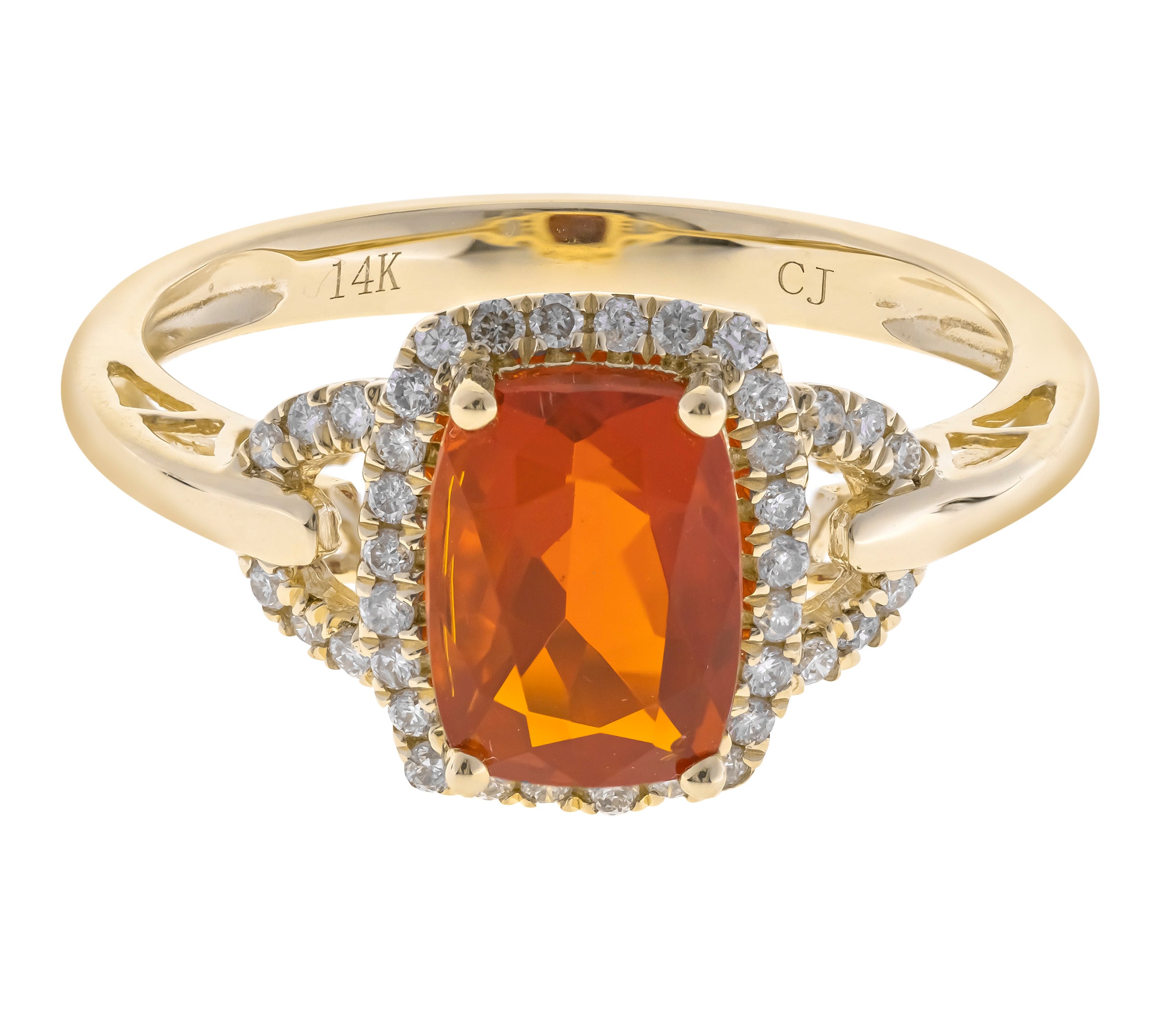 Emery 14K Yellow Gold Cushion-Cut Mexican Fire Opal Ring
