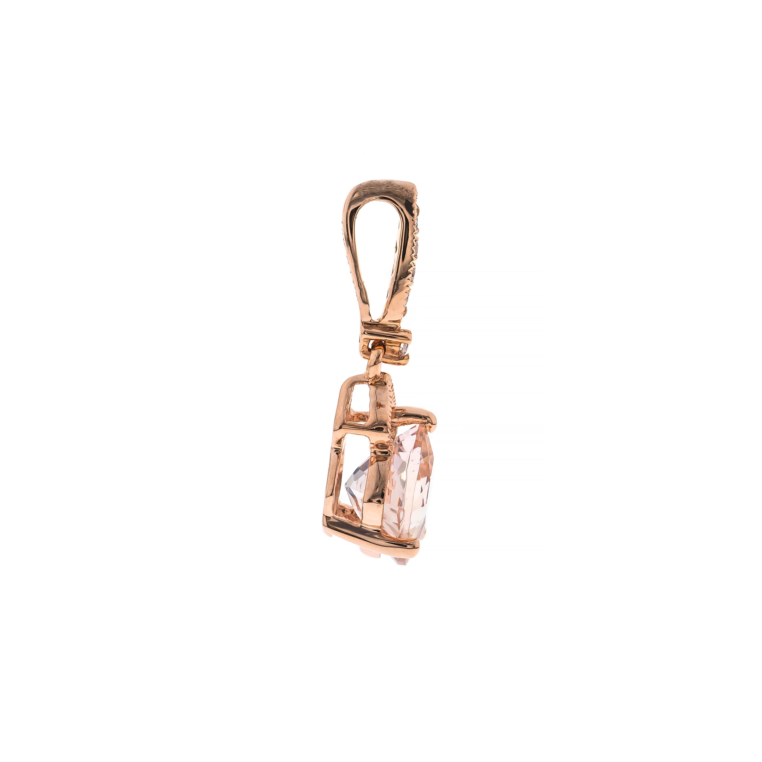Decorate yourself in elegance with this Pendant is crafted from 10K Rose Gold by Gin & Grace Pendant. The jewelry boasts Cushion-Cut cabochon setting white color Natural Morganite (1 pcs) 0.78 Carat and Round-Cut prong setting Diamond (5 pcs) 0.03 Carat. This Pendant is weight 0.55 grams. This delicate Pendant is polished to a high finish shine. Simple Stud clasps keep these Pendant securely fastened.