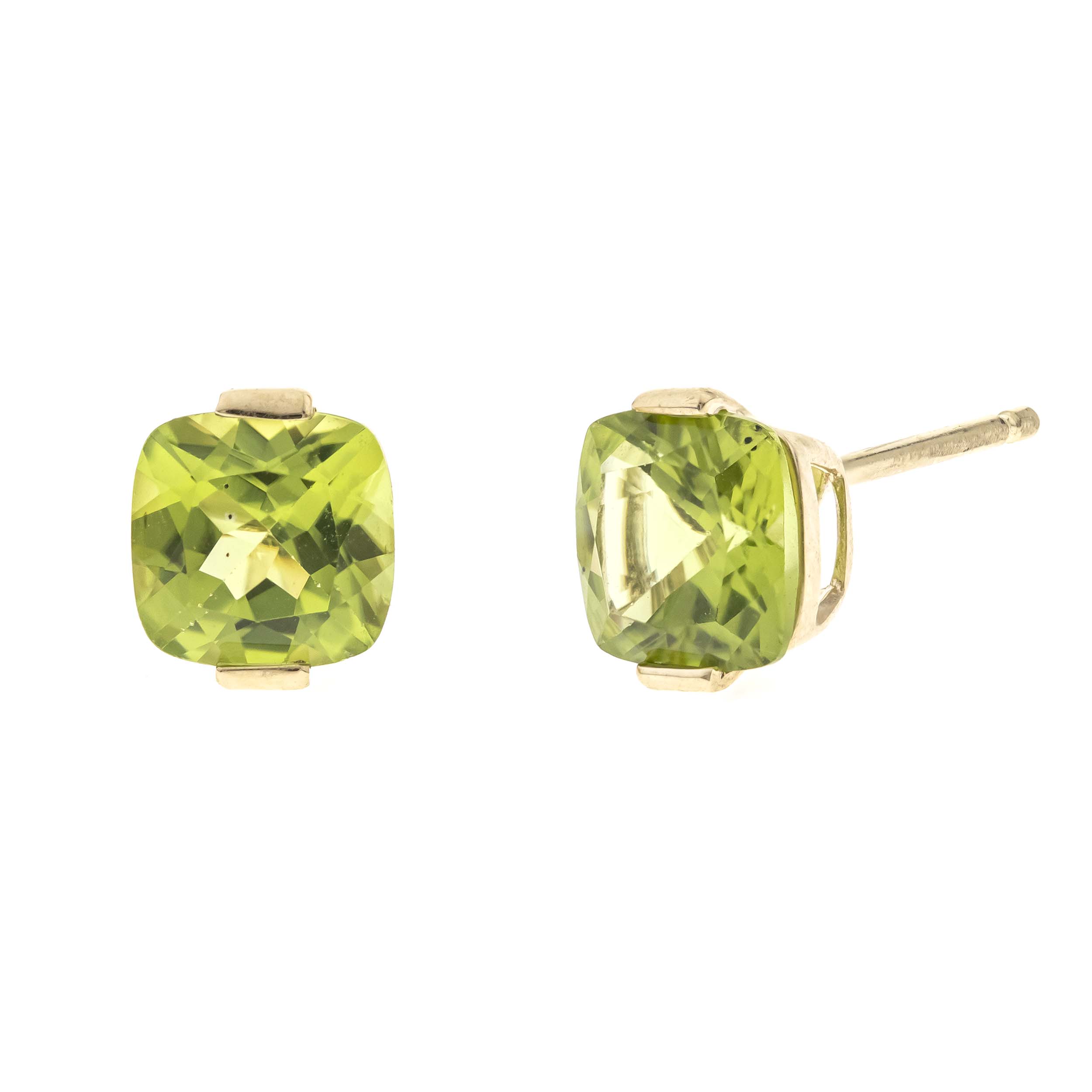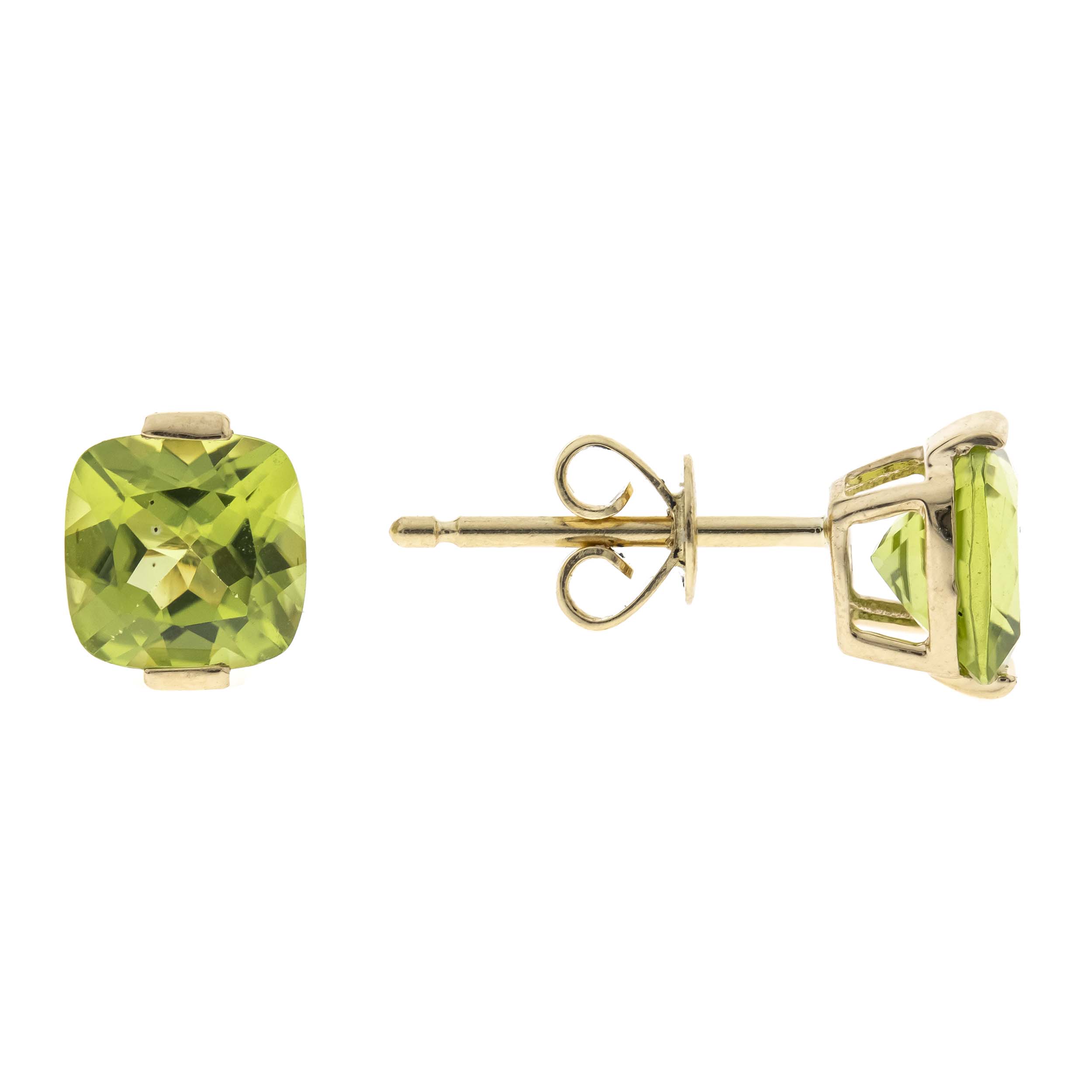 Decorate yourself in elegance with this Earring is crafted from 10K Yellow Gold by The Loop Club Earring. The jewelry boasts Cushion-Cut setting Manchurian Peridot (2 pcs) 2.25 Carat. This Earring is weight 0.84 grams. This delicate Earring is polished to a high finish shine. Simple Stud clasps keep these earrings securely fastened.