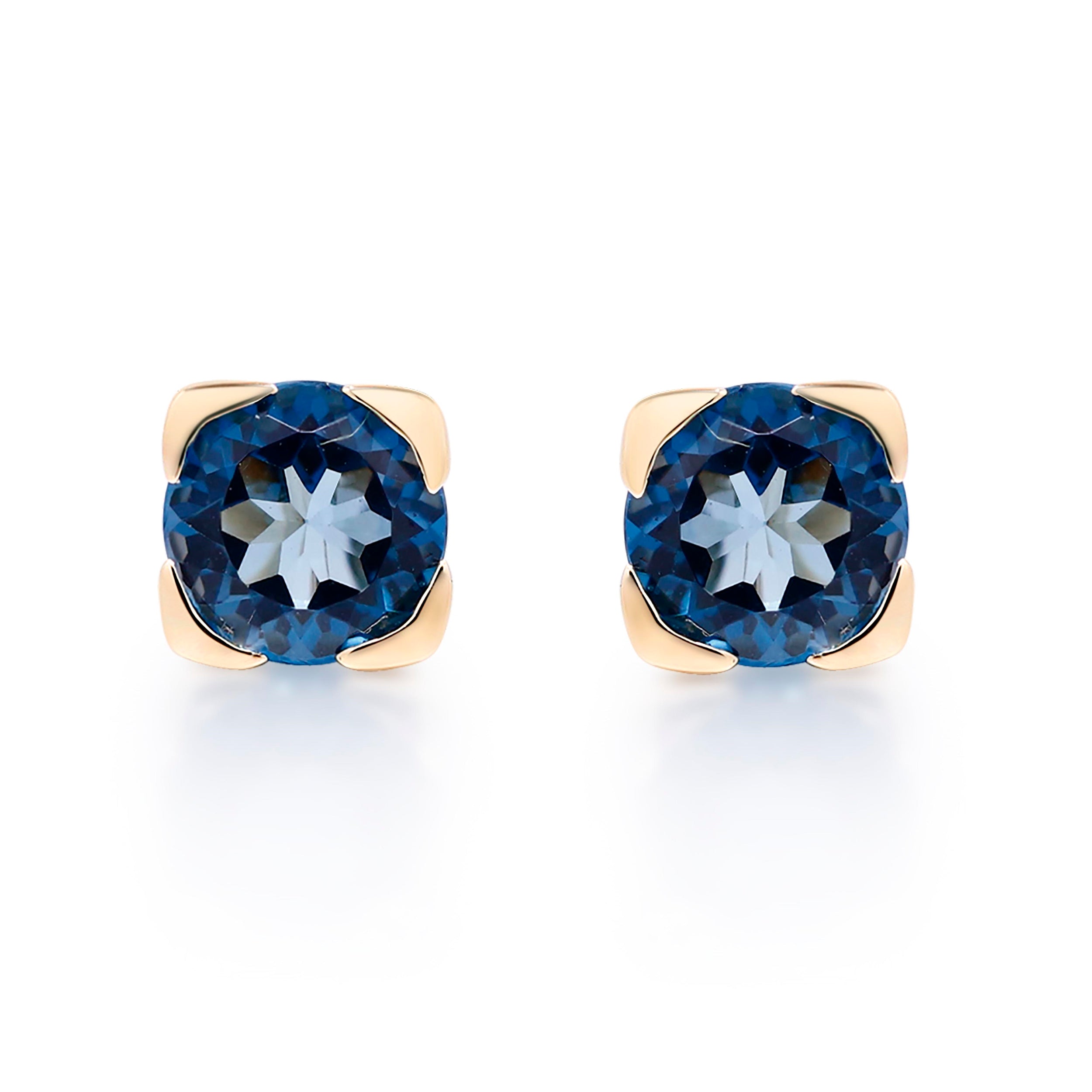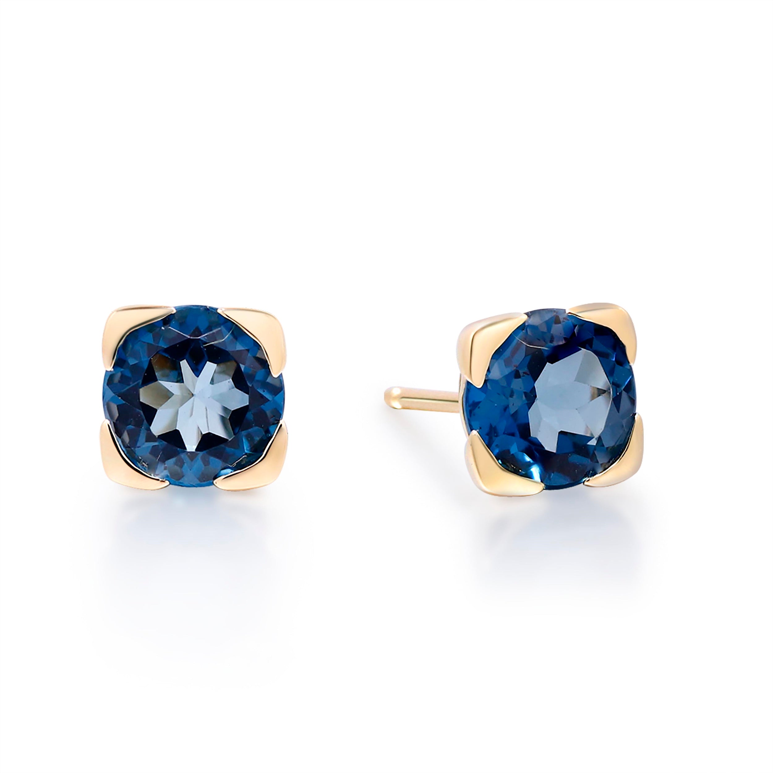 Aubrey 10K Yellow Gold Round-Cut London Blue Topaz Earring