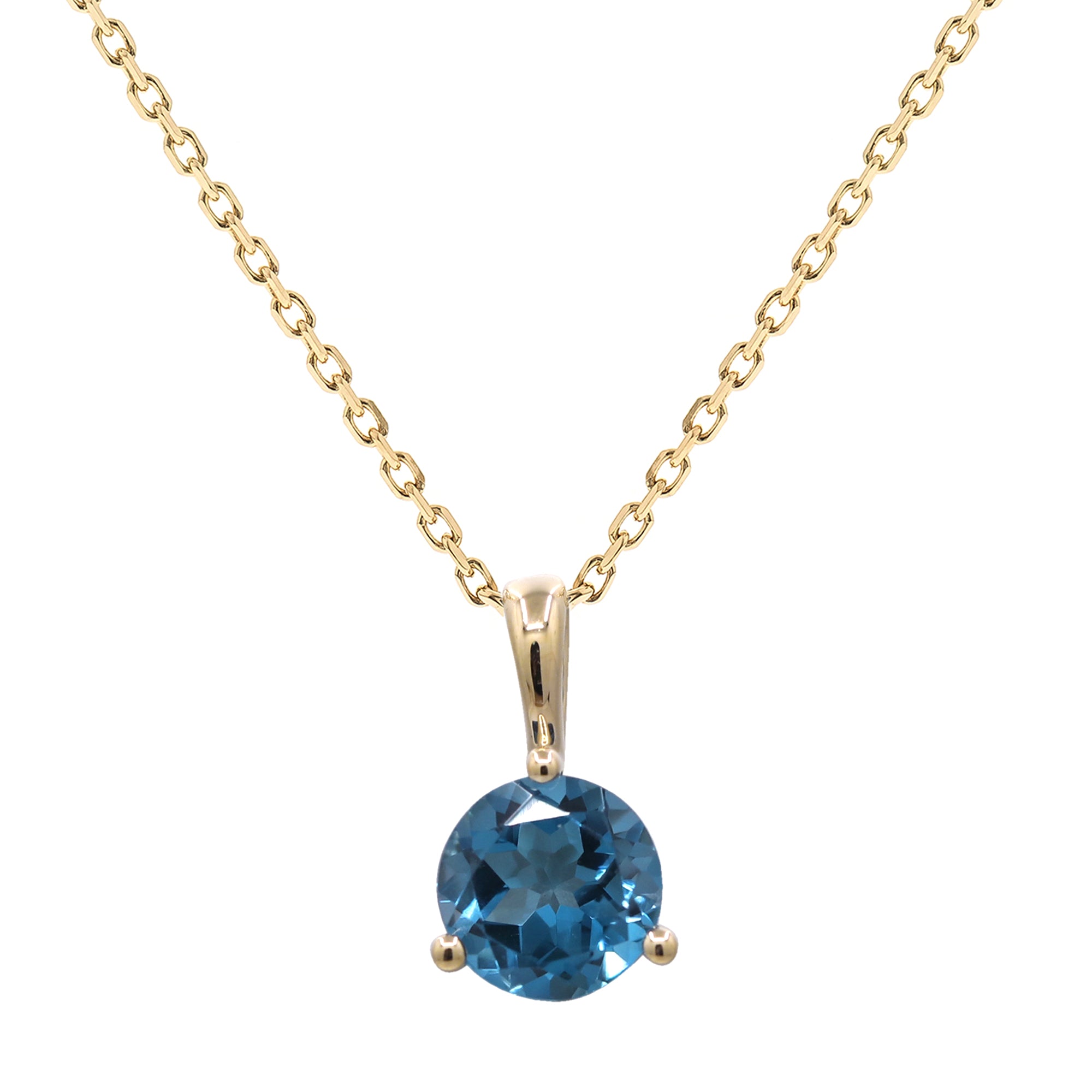 Decorate yourself in elegance with this Pendant is crafted from 10-karat Yellow Gold by Gin & Grace. This Pendant is made up of 6.0MM Round-cut Brazilian London Blue Topaz (1 Pcs) 0.980 carat. This Pendant is weight 0.34 grams. This delicate Pendant is polished to a high finish shine.