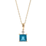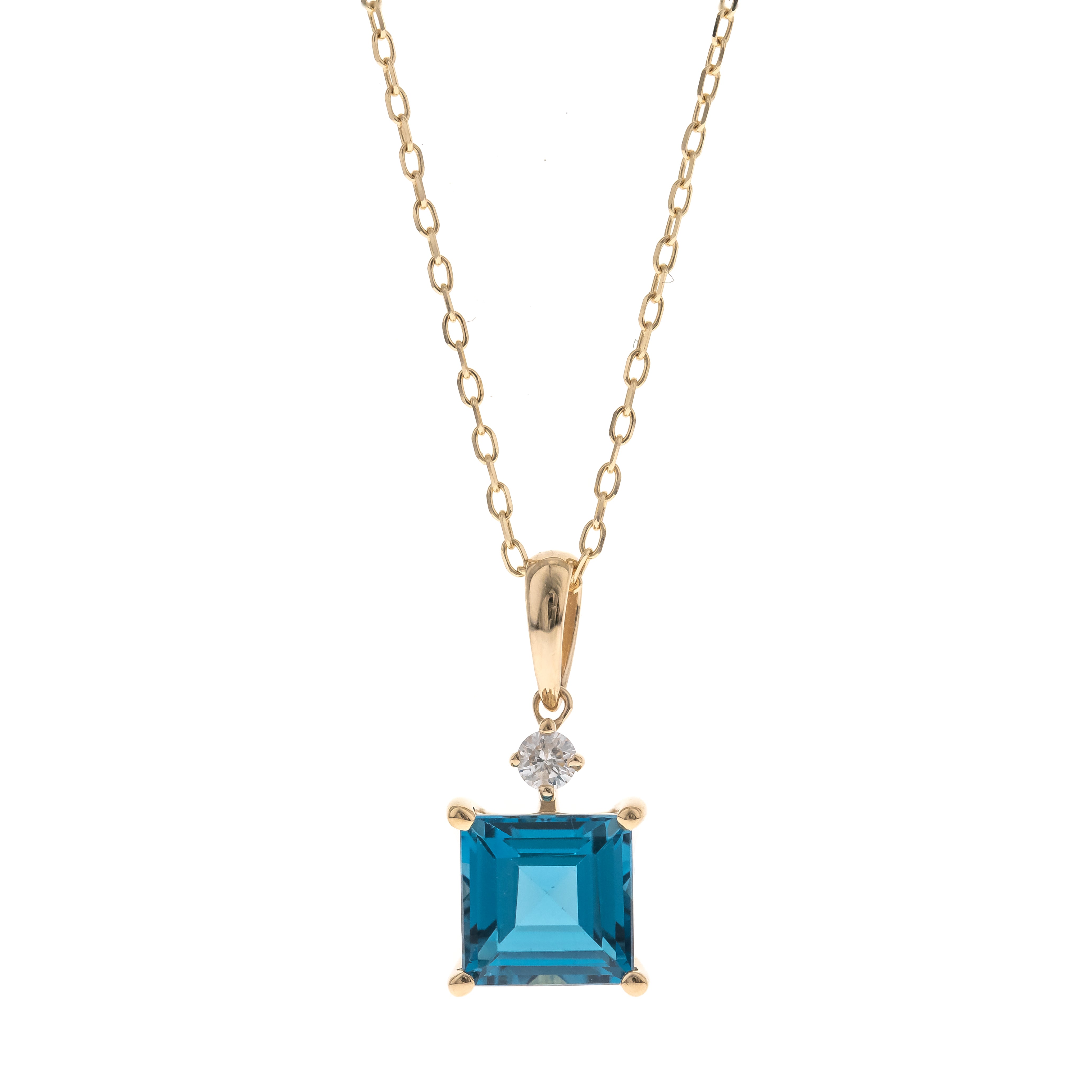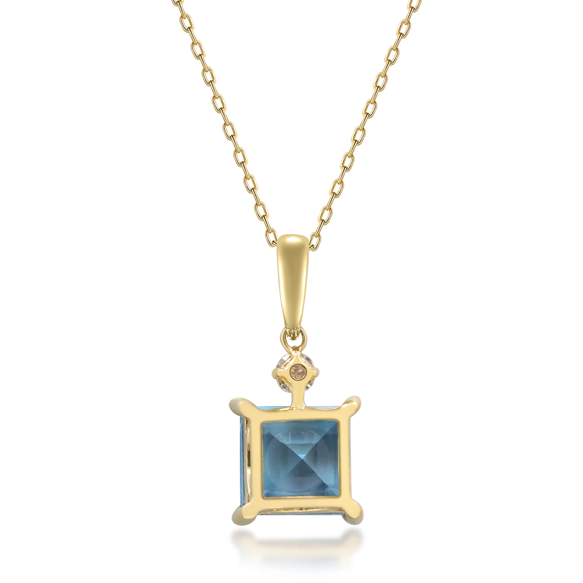 Decorate yourself in elegance with this Pendant is crafted from 10K Yellow Gold by Gin & Grace. This Pendant is made up of Square-Cut Brazilian London Blue Topaz (1 pcs) 1.46 carat and Round-cut White Diamond (1 Pcs) 0.04 Carat. This Pendant is weight 0.49 grams. This delicate Pendant is polished to a high finish shine.