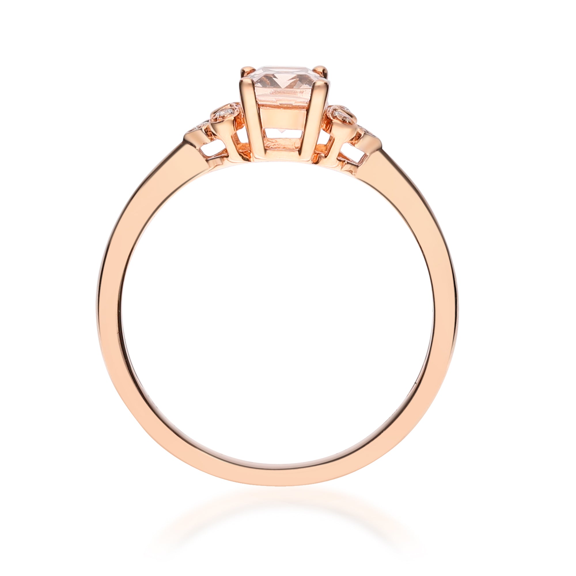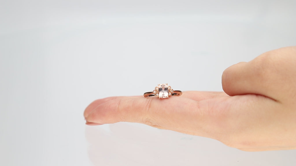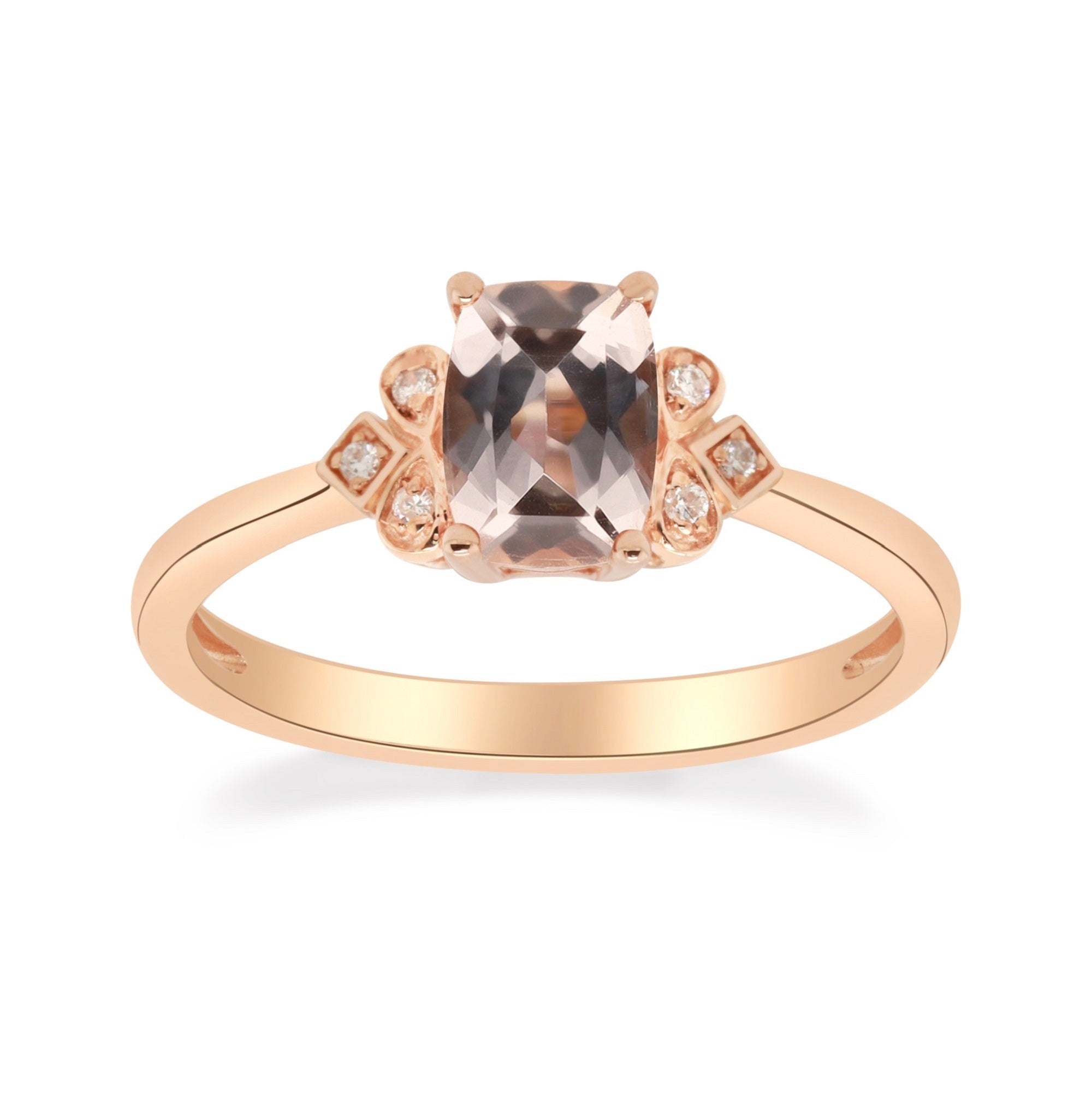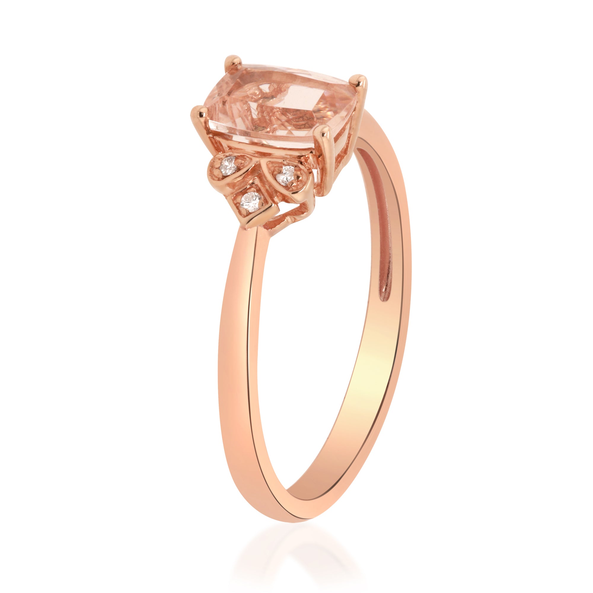 Stunning, timeless and classy eternity Unique ring. Decorate yourself in luxury with this Gin & Grace ring. The 10K Rose Gold jewelry boasts Cushion-Cut Prong Setting Genuine Madagascar Morganite (1pcs) 0.83 Carat and Round-Cut Prong Setting Diamond (6 pcs) 0.03 Carat accent stones for a lovely design. This ring is weight 1.82 grams. Crafted with 10k Rose Gold, this delicate Ring is polished to a high finish shine