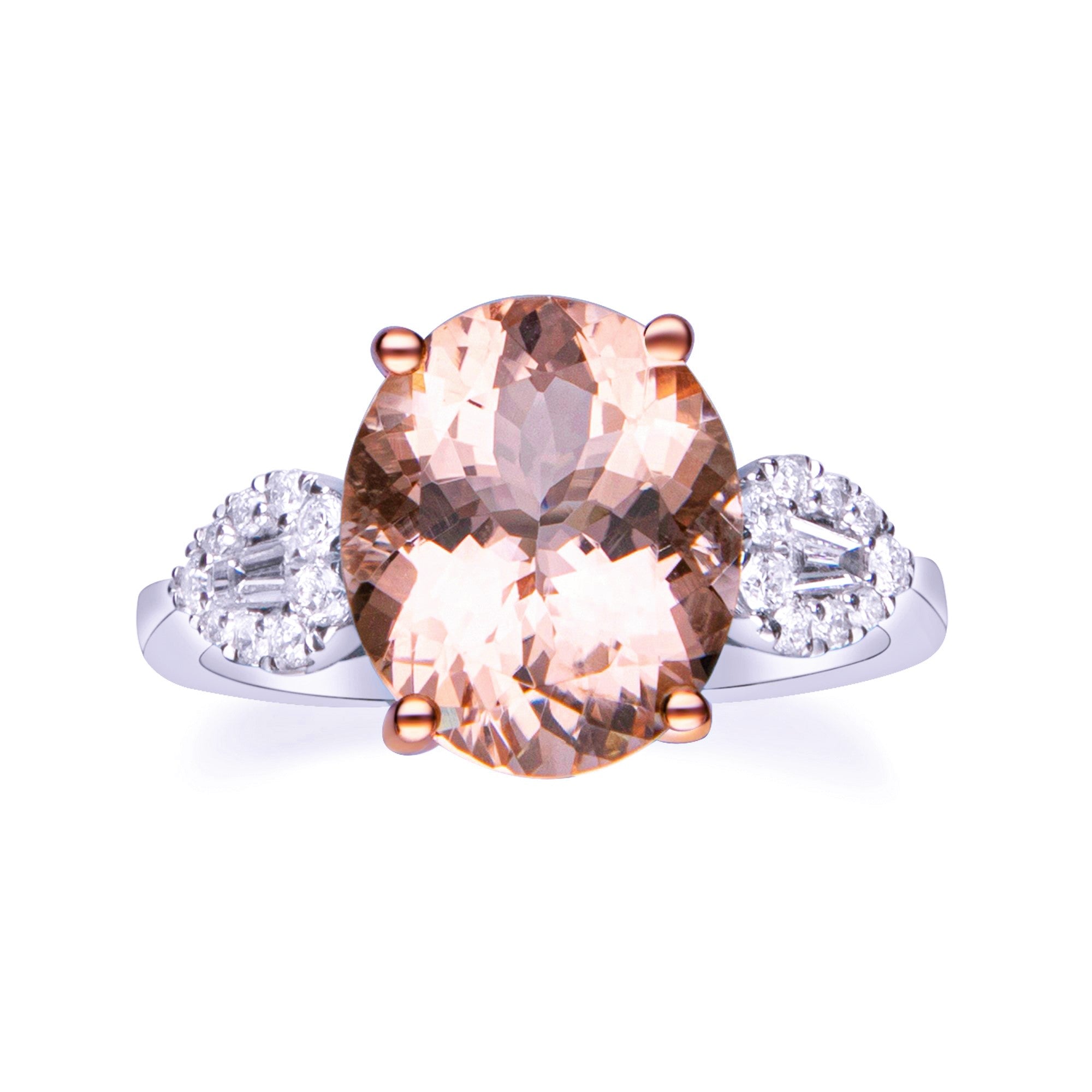 Stunning, timeless and classy eternity Unique Ring. Decorate yourself in luxury with this Gin & Grace Ring. The 14K Two Tone Gold jewelry boasts Oval-Shape Prong Setting Genuine Madagascar Morganite (1 pc) 4.50 Carat along with Natural Round cut white Diamond (18 Pcs) 0.17 Carat and Natural Baguette cut white Diamond (2 Pcs) 0.09 Carat, accent stones for a lovely design. This Ring is weight 3.19 grams. Crafted with 14K Two Tone Gold, this delicate Ring is polished to a high finish shine.