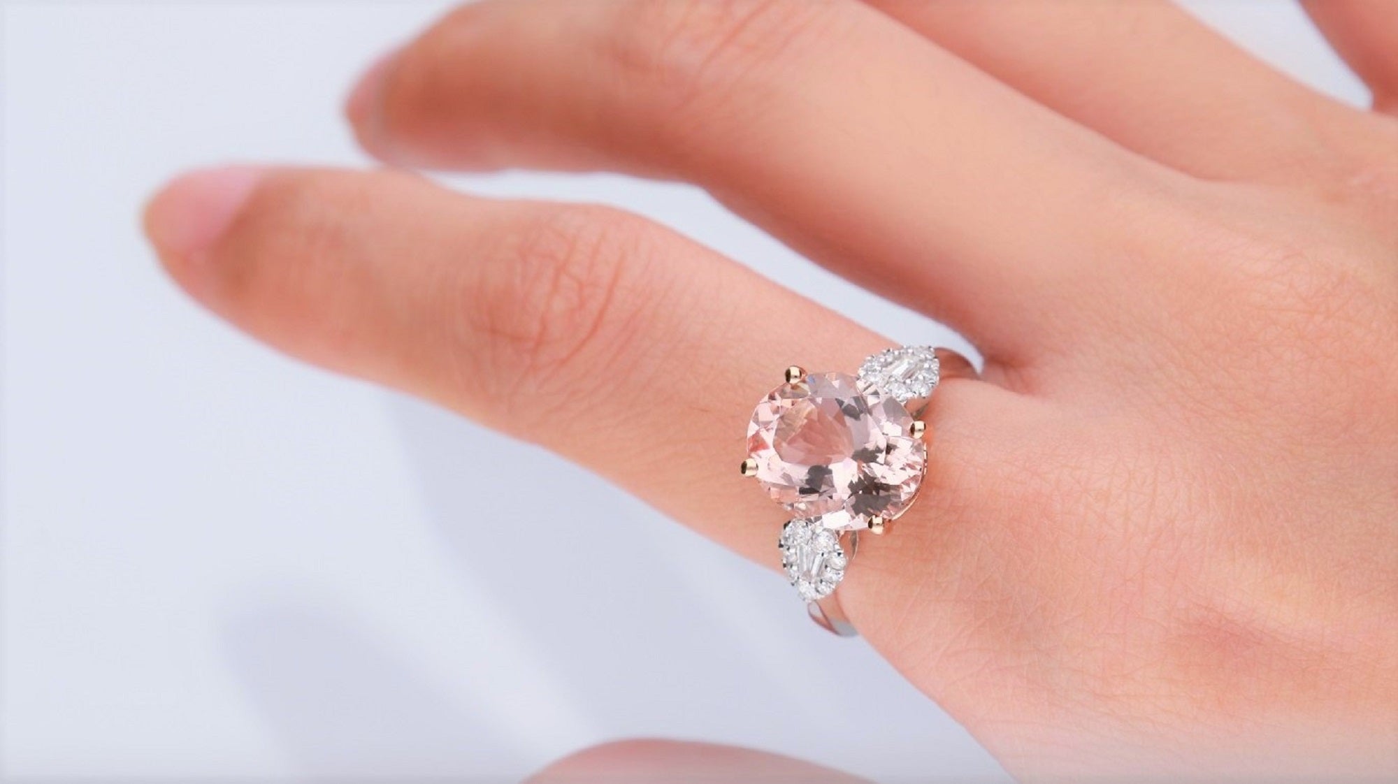 Iris 14K Two Tone Gold Oval-Cut Madagascar Morganite Ring