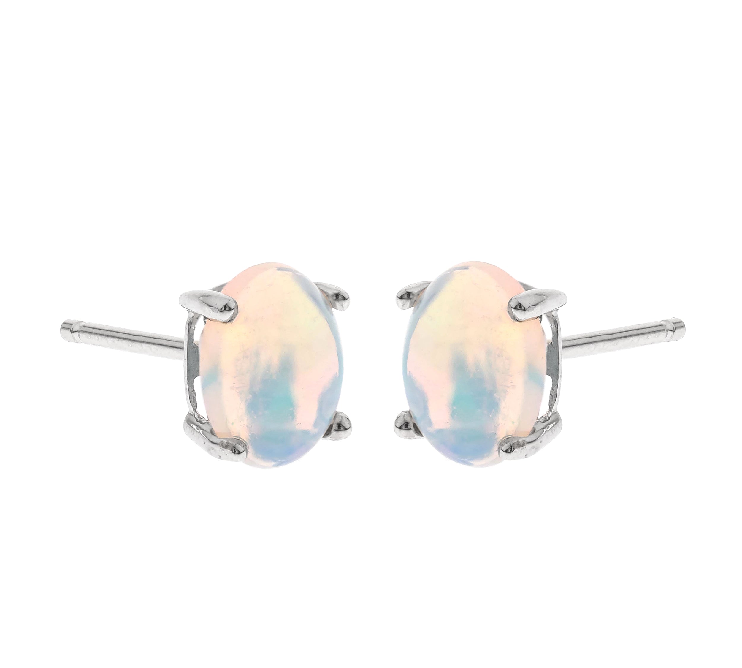 Scarlett 14K White Gold Oval-Cut Natural African Opal Earrings