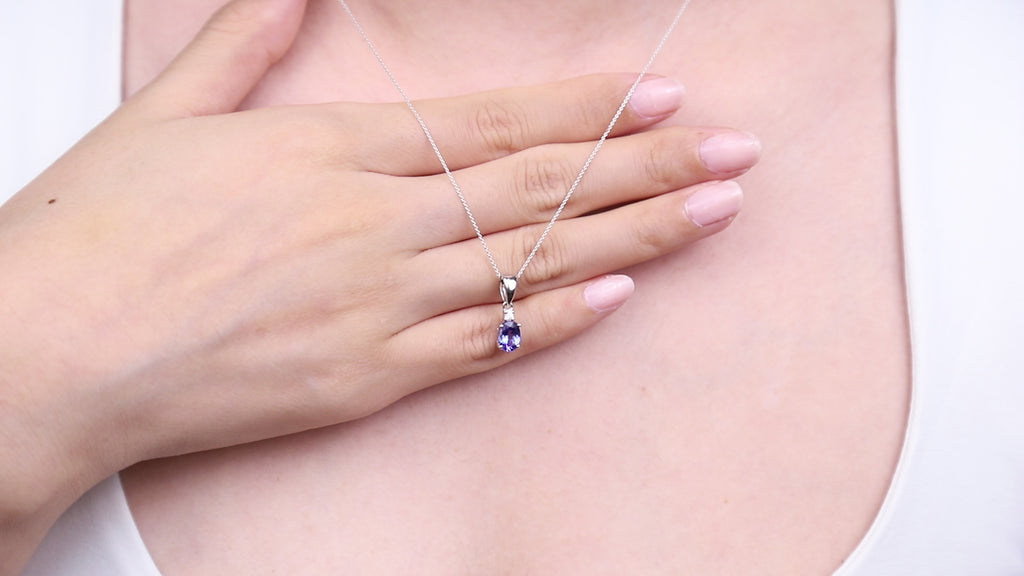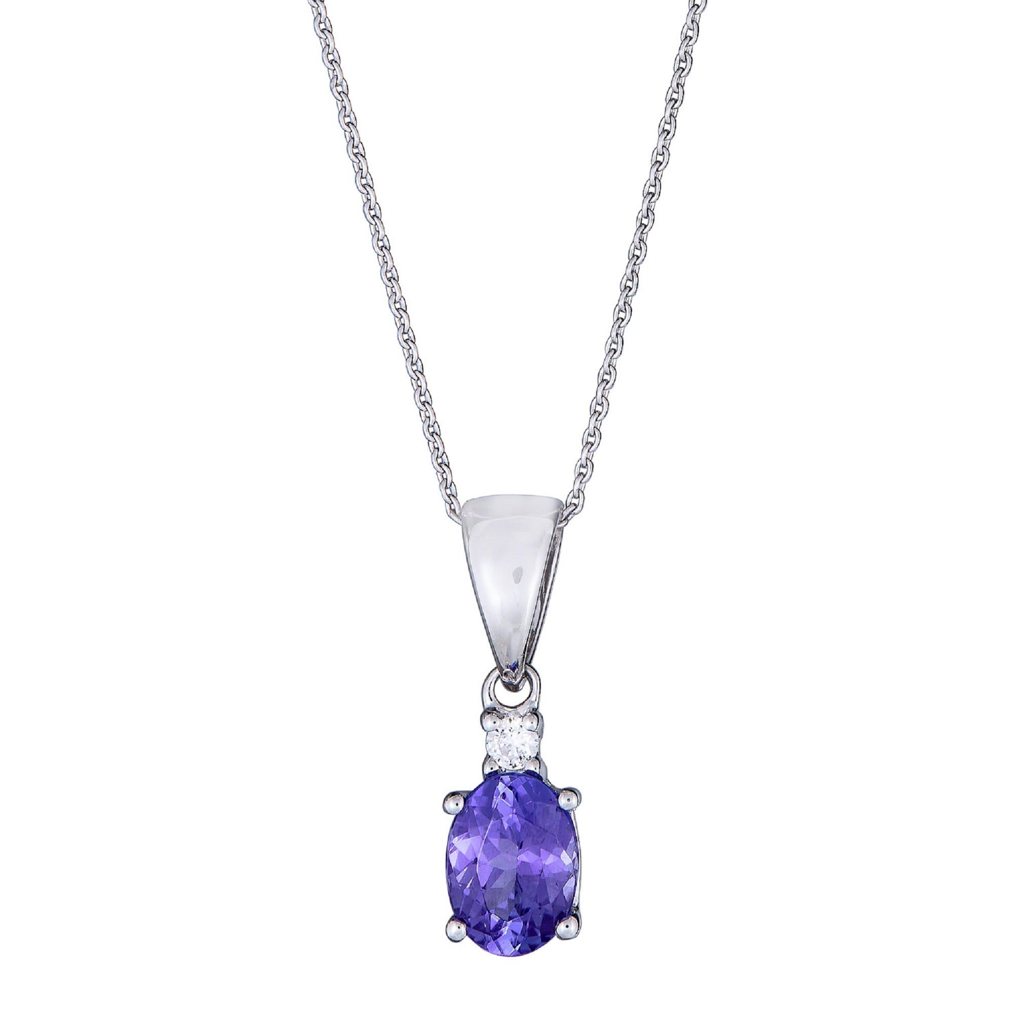 Stunning, timeless and classy eternity Unique Pendant. Decorate yourself in luxury with this Gin & Grace Pendant. The 14k White Gold jewelry boasts Oval-Cut Prong Setting Genuine Tanzanian Tanzanite (1 pcs) 0.81 Carat, along with Natural Round cut white Diamond (1 Pcs) 0.03 Carat, accent stones for a lovely design. This Pendant is weight 0.94 grams. Crafted with 14k White Gold, this delicate Pendant is polished to a high finish shine..