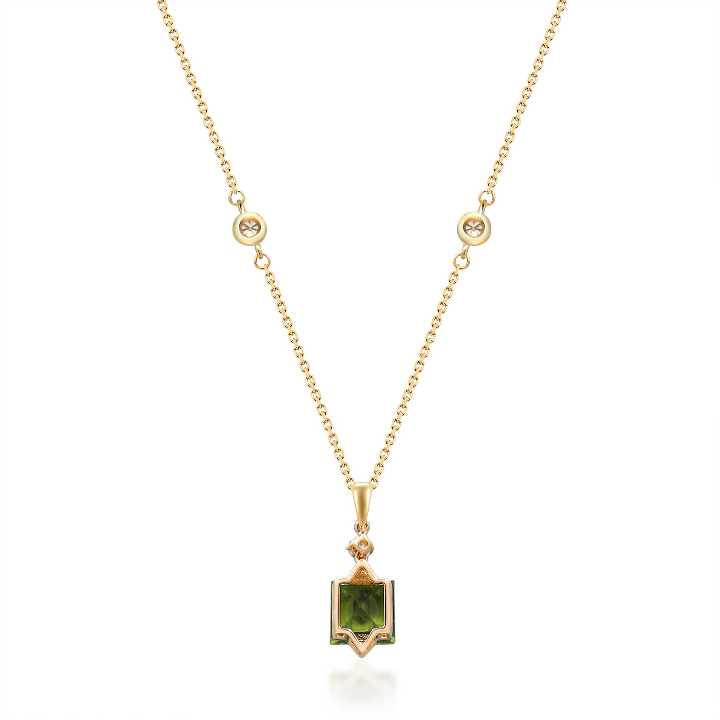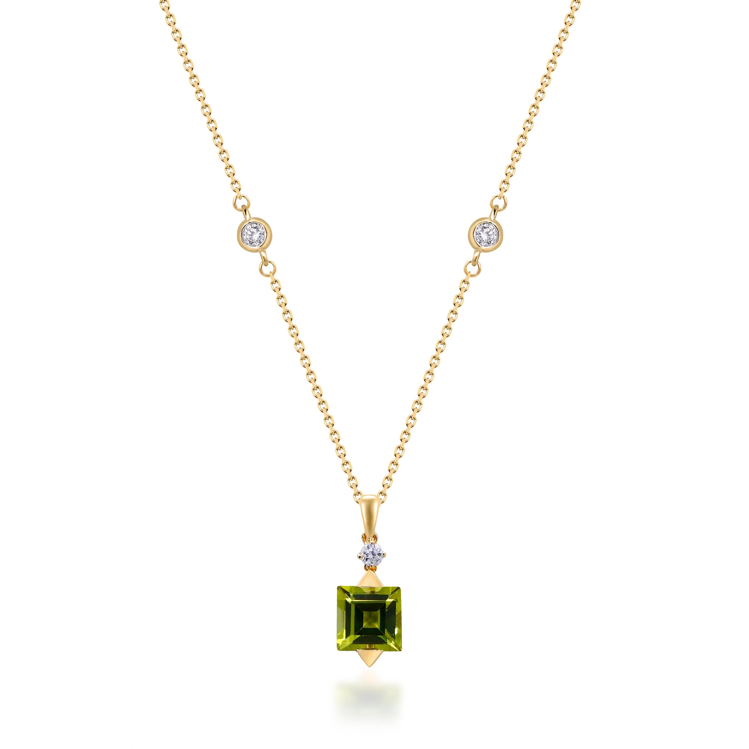 Decorate yourself in elegance with this Pendant is crafted from 10-karat Yellow Gold by Gin & Grace. This Pendant is made up of 6.0 mm Square-Cut Manchurian Peridot (1 pcs) 1.30 carat and Round-cut White Diamond (1 Pcs) 0.03 Carat. This Pendant is weight 1.78 grams. This delicate Pendant is polished to a high finish shine.