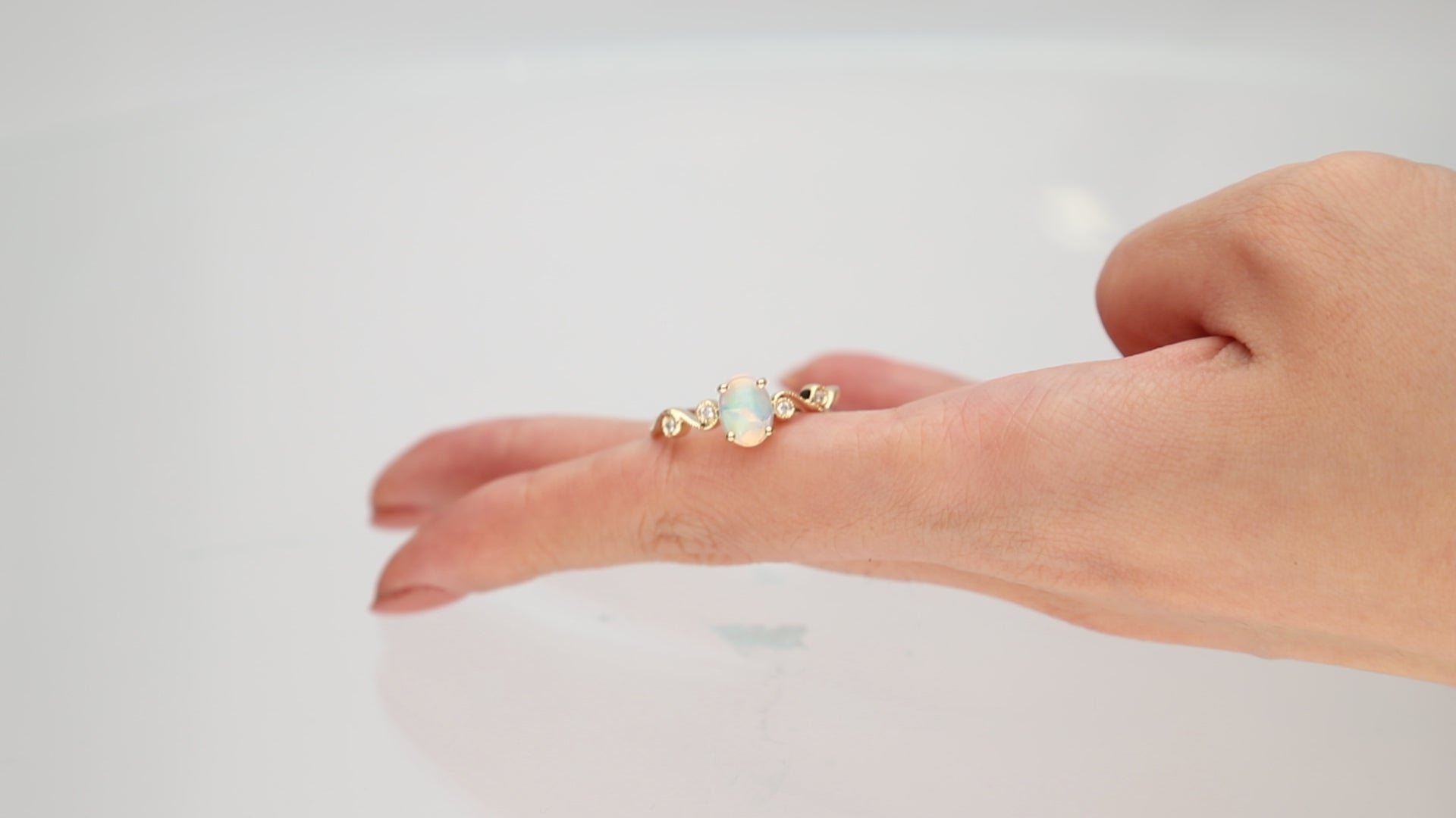 Stunning, timeless and classy eternity Unique ring. Decorate yourself in luxury with this Gin & Grace ring. This ring is made up of 8x6 MM Oval-cut Prong Setting African Opal (1 pcs) 0.84 Carat and Round-Cut Prong Setting Diamond (4 pcs) 0.05 Carat accent stones for a lovely design. This ring weighs 2.39 grams. The ring is crafted of shining 14-karat Yellow Gold and is completed by a highly polished finish.