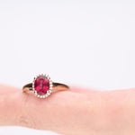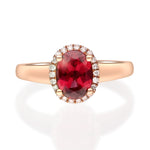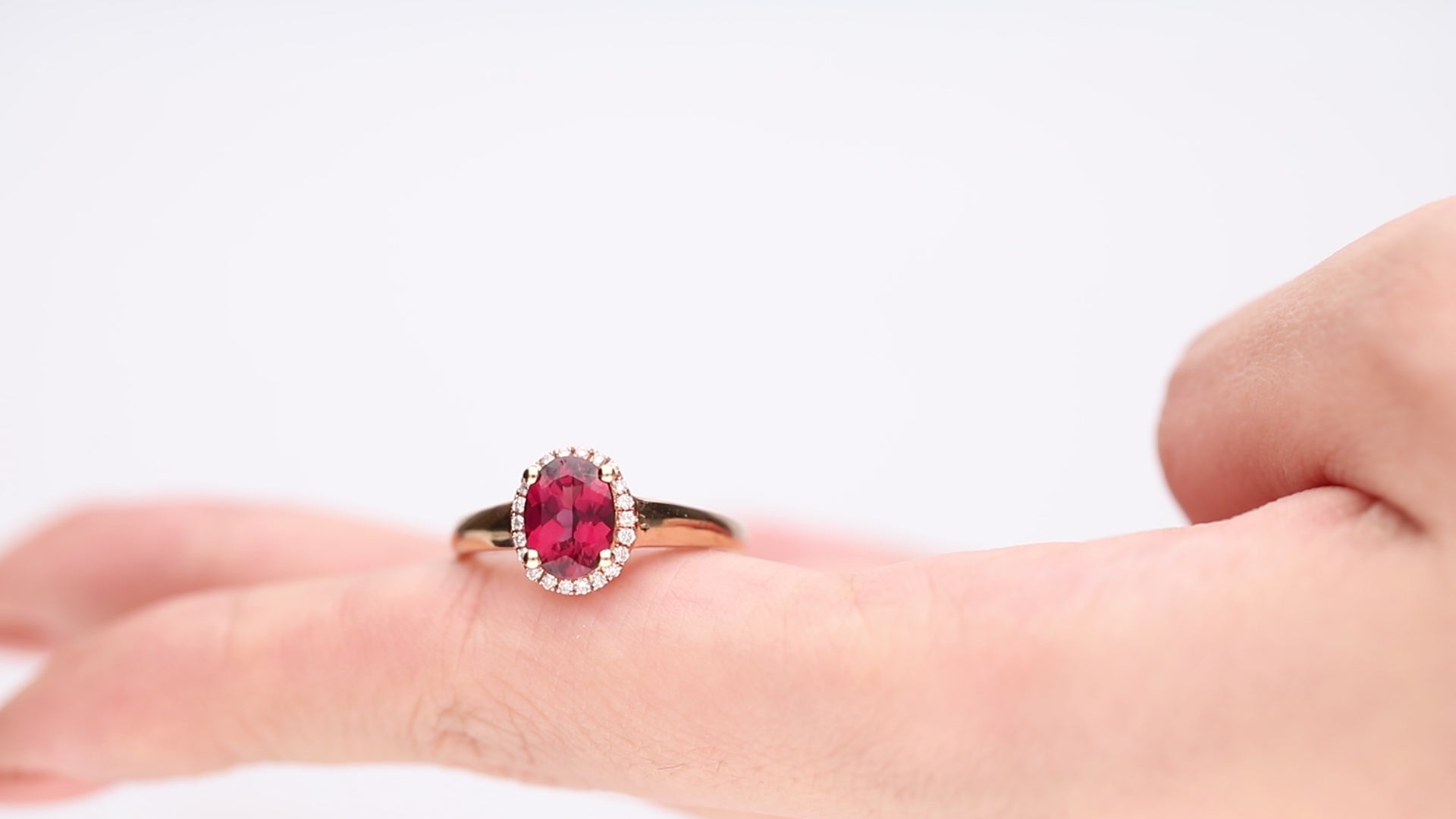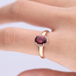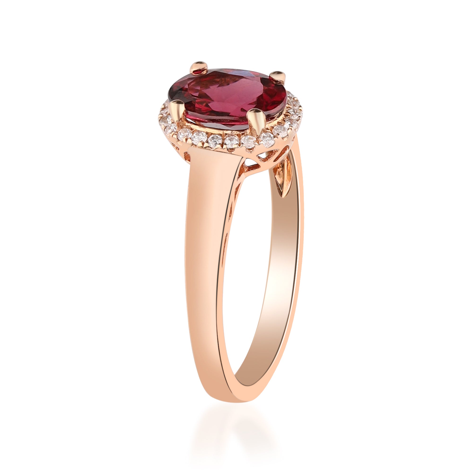 Stunning, timeless and classy eternity Unique Ring. Decorate yourself in luxury with this Gin & Grace Ring. The 10K Rose Gold jewelry boasts Oval-Cut Prong Setting Raspberry color Natural Madagascar Rhodolite Garnet (1 pcs) 1.47 Carat, along with Natural Round cut white Diamond (22 Pcs) 0.12 Carat, accent stones for a lovely design. This Ring is weight 2.28 grams. Crafted with 10K Rose Gold, this delicate Ring is polished to a high finish shine.