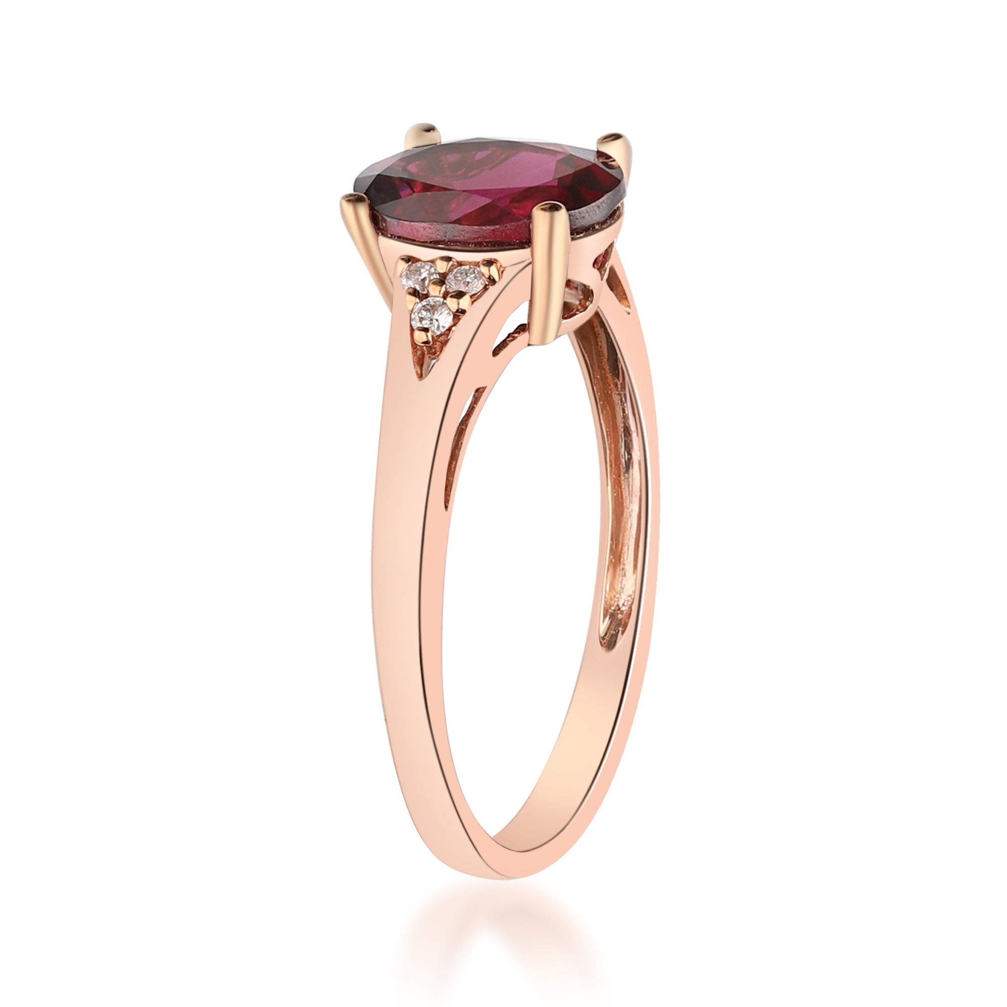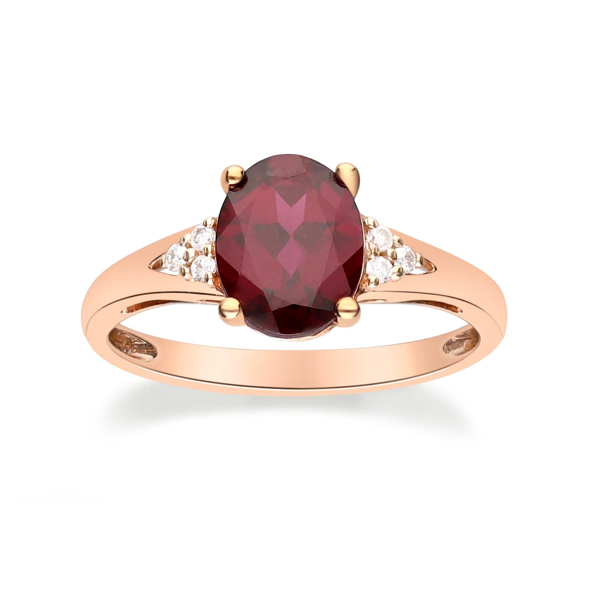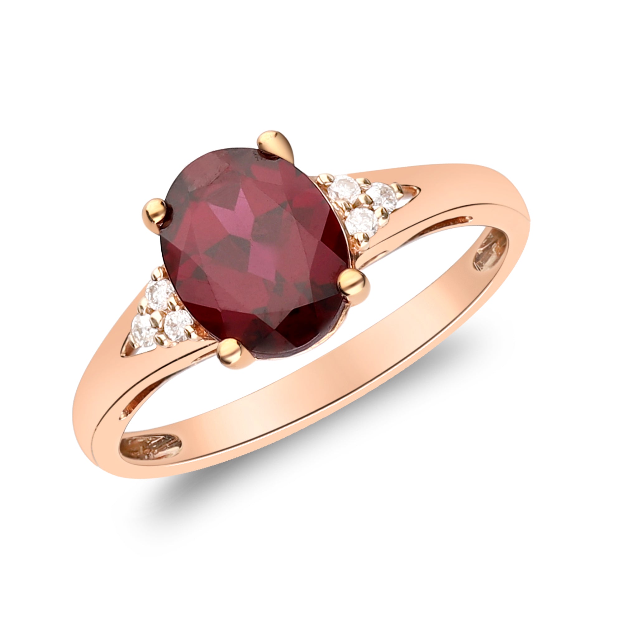 Stunning, timeless and classy eternity Unique Ring. Decorate yourself in luxury with this Gin & Grace Ring. The 10K Rose Gold jewelry boasts Oval-Cut Prong Setting Raspberry color Natural Madagascar Rhodolite Garnet (1 pc) 2.31 Carat, along with Natural Round cut white Diamond (6 Pcs) 0.05 Carat, accent stones for a lovely design. This Ring is weight 1.86 grams. Crafted with 10K Rose Gold, this delicate Ring is polished to a high finish shine