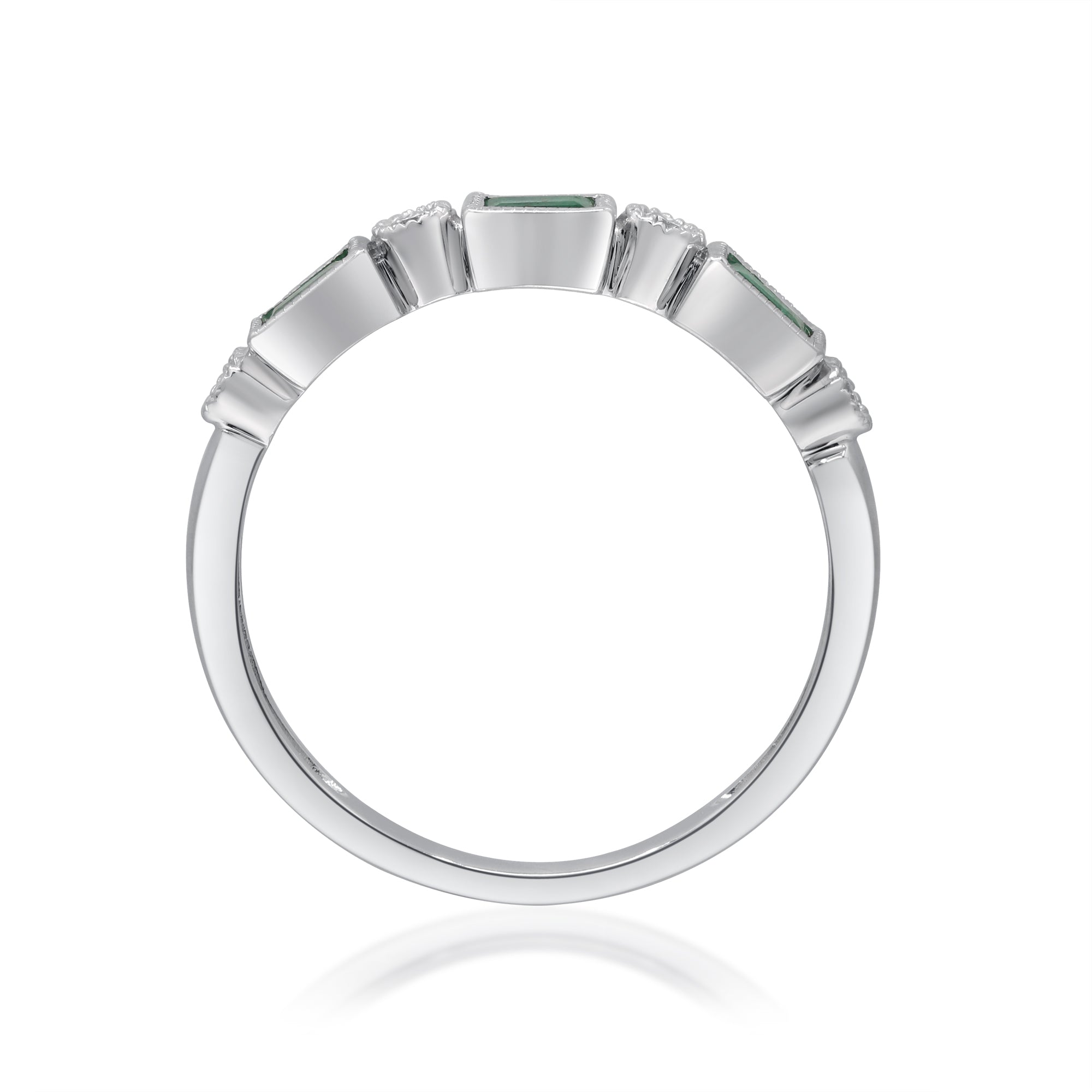 Decorate yourself in elegance with this Ring is crafted from 14-karat White Gold by Gin & Grace. This Ring is made up of Baguette-cut (3 pcs) 0.41 carat Ceylon Blue Sapphire and Round Cut Diamond (4 Pcs) 0.06 Carat. This Ring is weight 1.85 grams. This delicate Ring is polished to a high finish shine.
