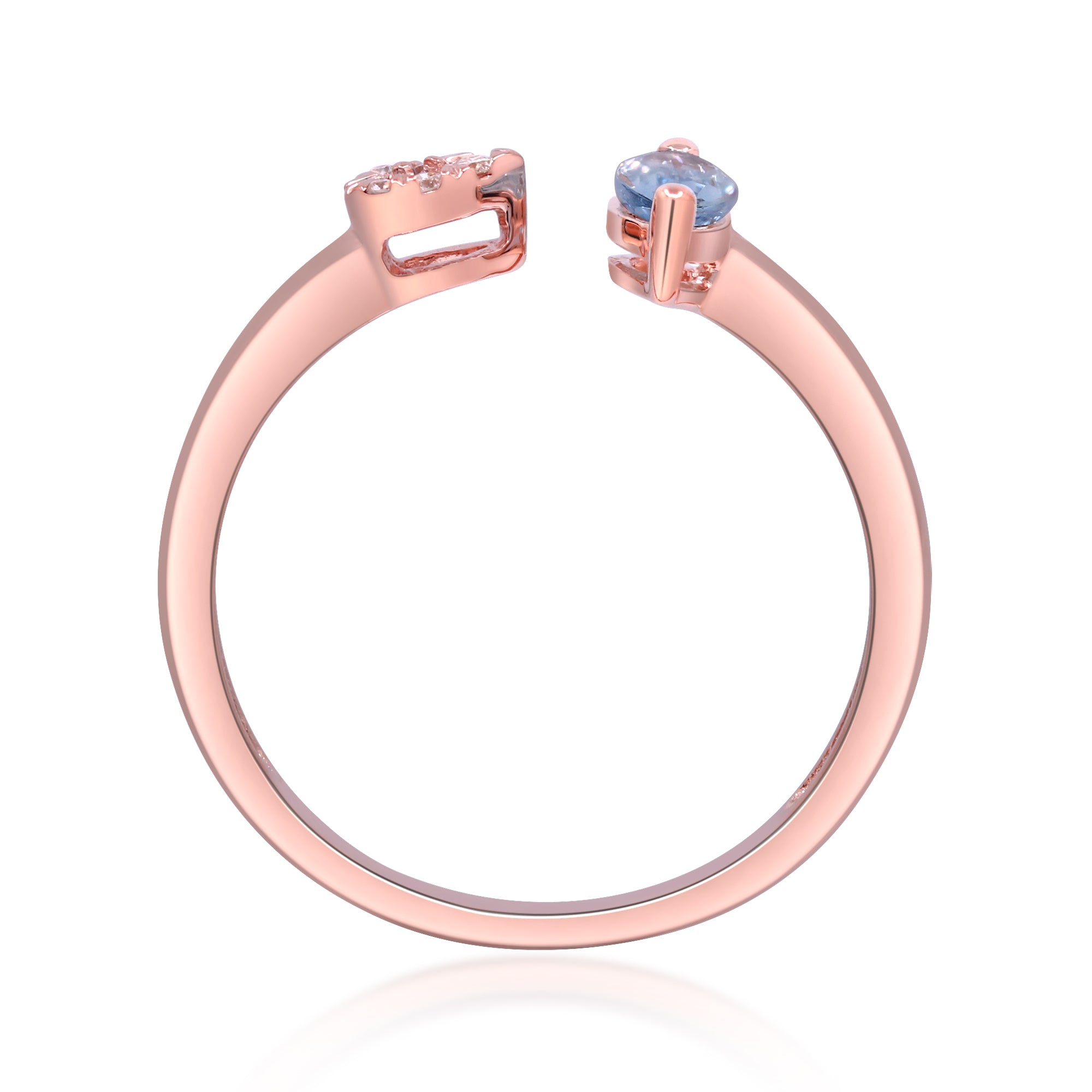 Stunning, timeless and classy eternity Unique Ring. Decorate yourself in luxury with this Gin & Grace Ring. The 18k Rose Gold jewelry boasts Marquise-Cut Prong Setting Genuine Aquamarine (1 pcs) 0.26 Carat, along with Natural Round cut white Diamond (6 Pcs) 0.06 Carat, accent stones for a lovely design. This Ring is weight 2.08 grams. Crafted with 18k Rose Gold, this delicate Ring is polished to a high finish shine.