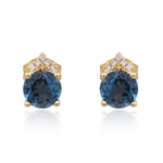 Alaina 10K Yellow Gold Round-Cut Brazilian London Blue Topaz Earrings